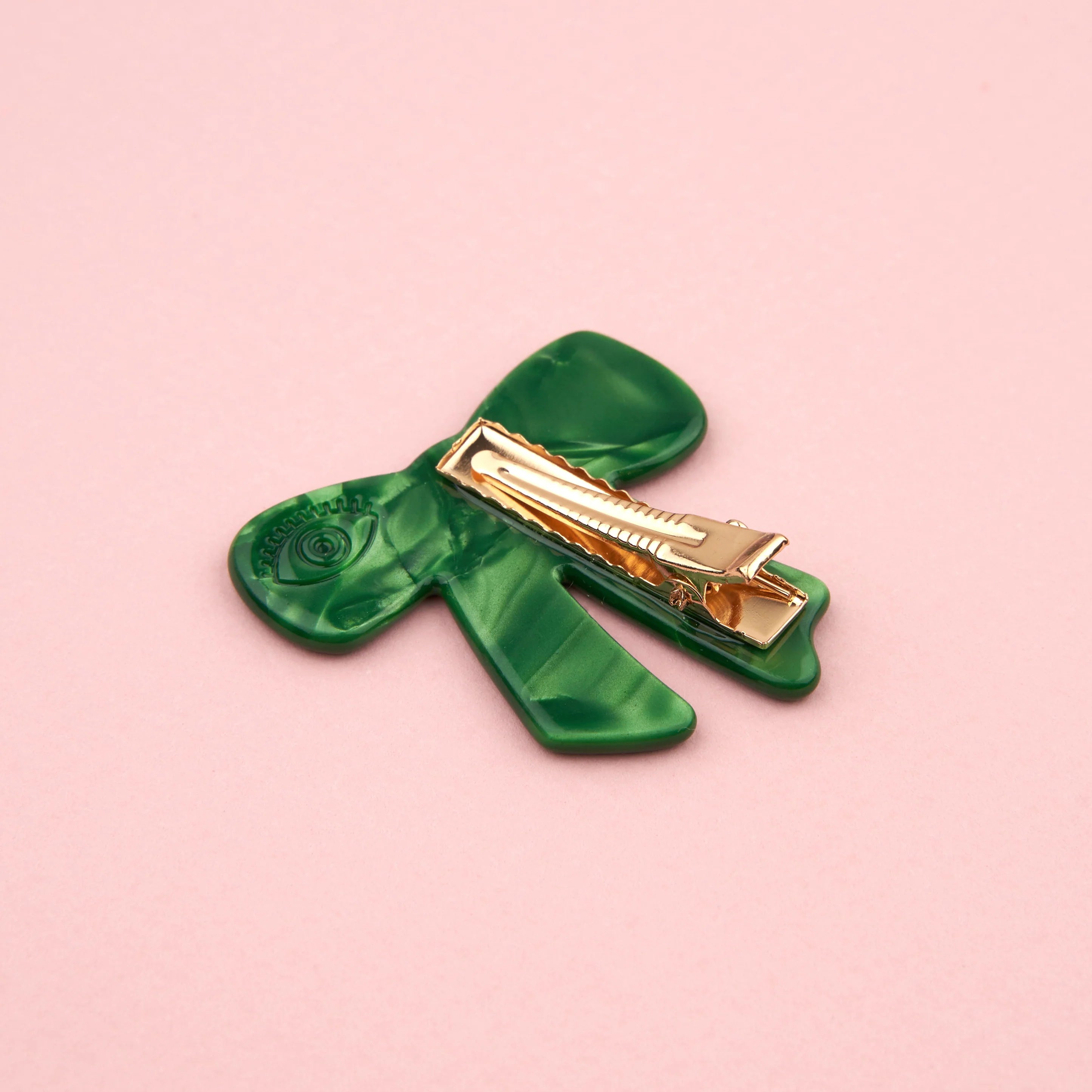 A simple yet charming barrette shaped like a lovely pine green ribbon, perfect for keeping stray strands in place with its crocodile clip. We love wearing them in pairs, why not with a red pal, to embrace the festive holiday colors.