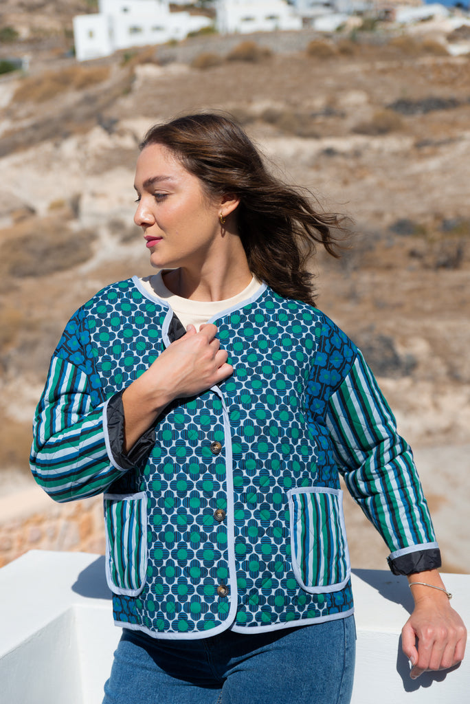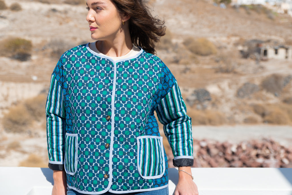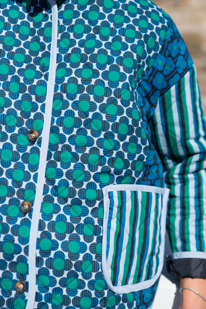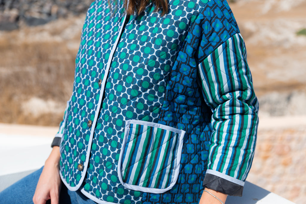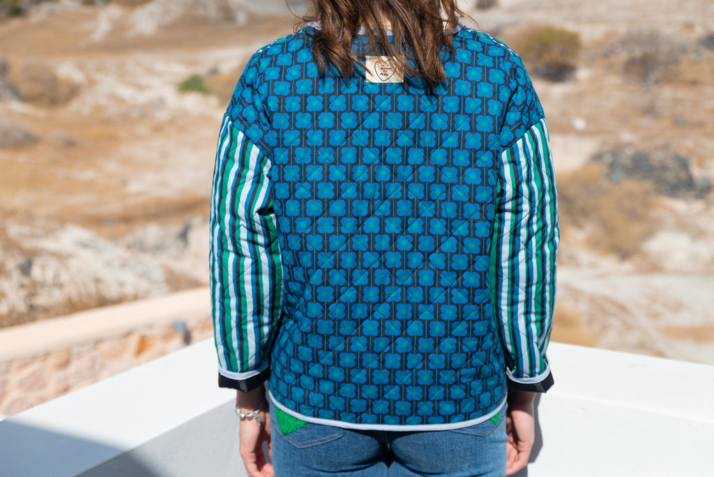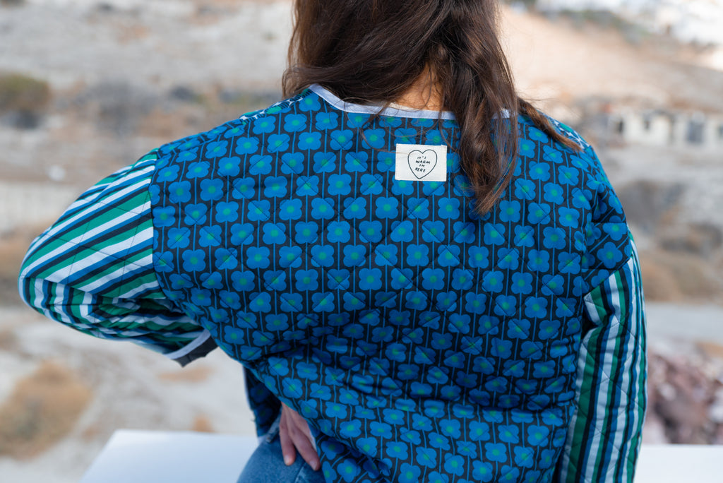 The Amara Quilted Jacket in blue with floral detail combines cozy quilting with a touch of romantic elegance. Its relaxed fit and internal lining ensure comfort, while the delicate pattern adds character to an effortlessly versatile piece. Ideal for layering, it balances charm with everyday wearability.