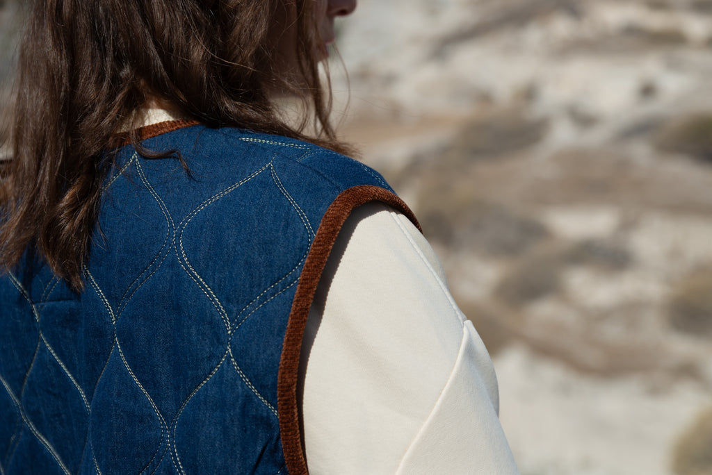 Wrap yourself in effortless charm with the Autumn Haze Vest — a cozy quilted denim layer edged in plush velour. Designed for comfort yet brimming with character, it’s the perfect piece to elevate your fall looks, whether paired with crisp shirts or chunky knits.
