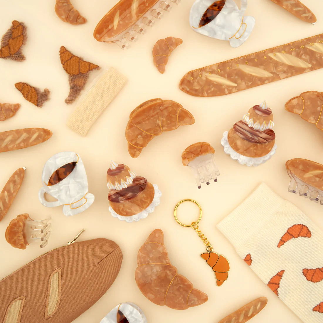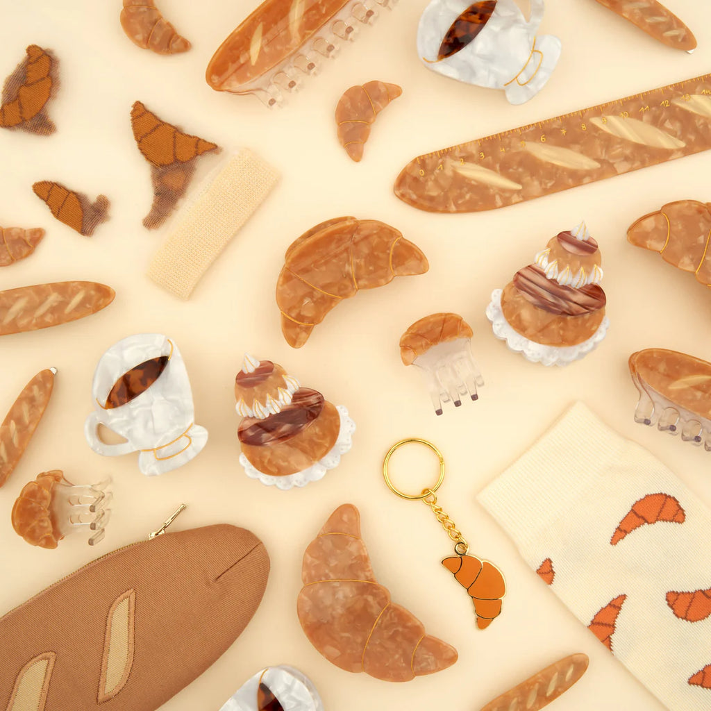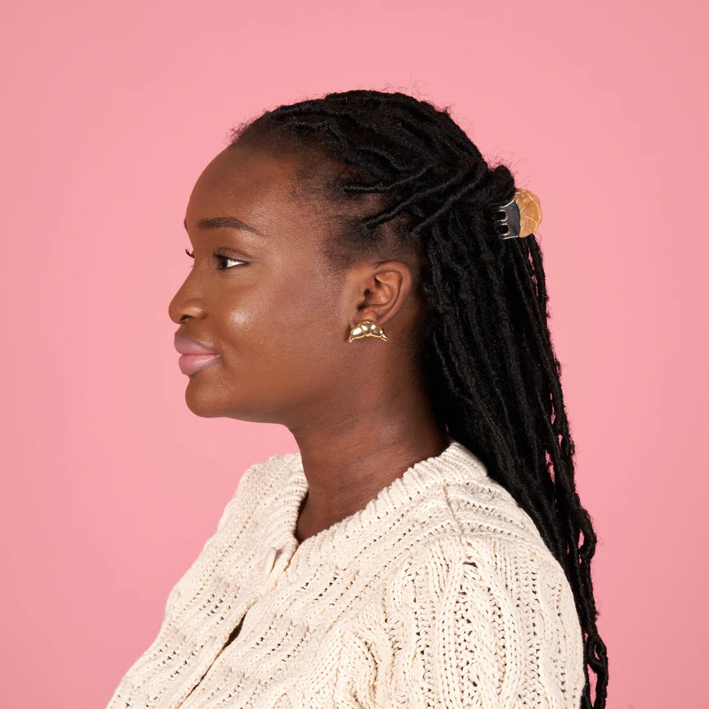 An adorable little croissant in the form of a mini hair clip! We clip this treat to all our buns and half-ponytails to show our desire for brunch on the terrace. A clip for long and short hair.