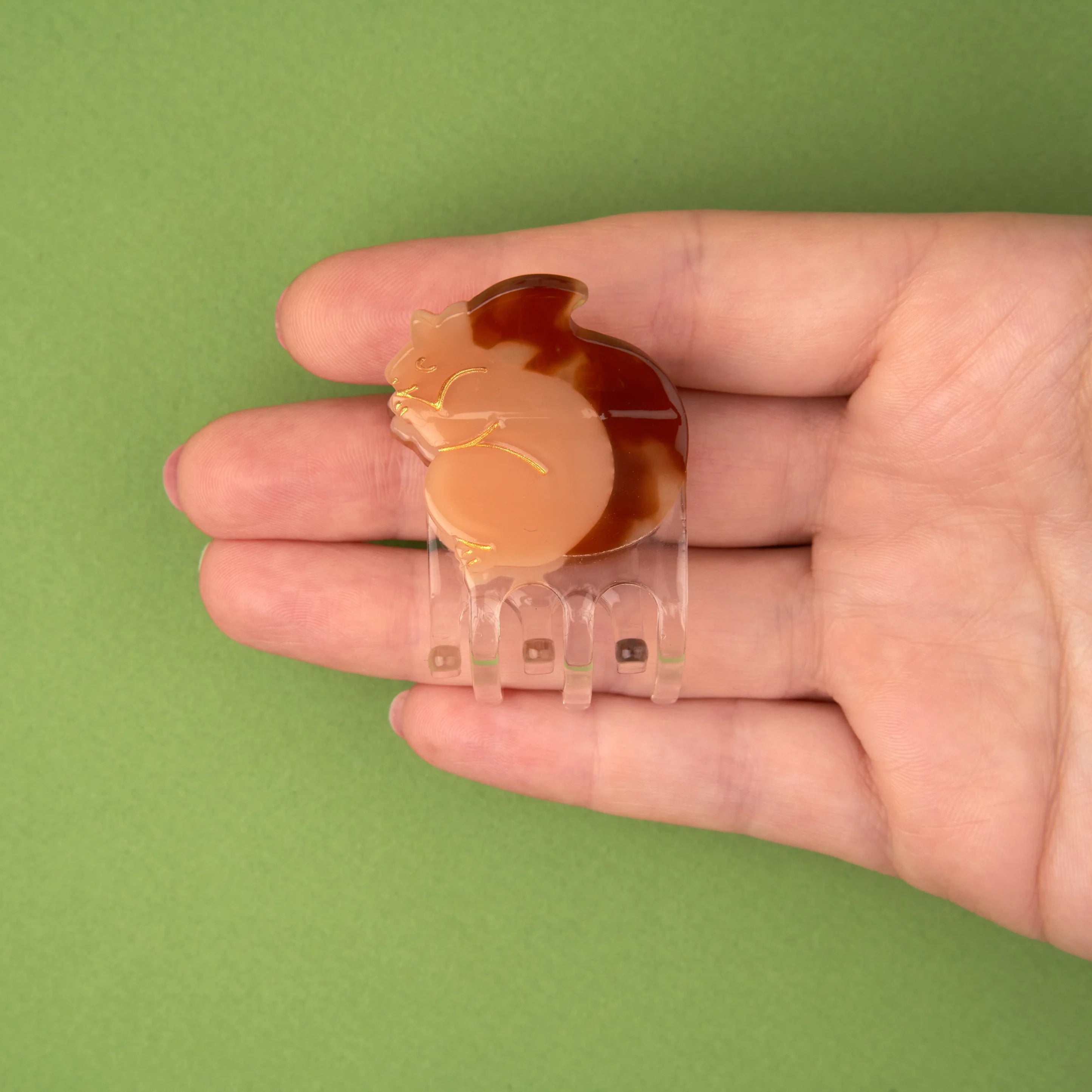 A mini hair claw shaped as an adorable owl. We can’t resist their closed eyes and folded wings, as if we catch them in the middle of a nap following an eventful night. An accessory made of brown acetate with elegant gold details, made for thin and thick hair to add a creative touch to all your hairstyles!