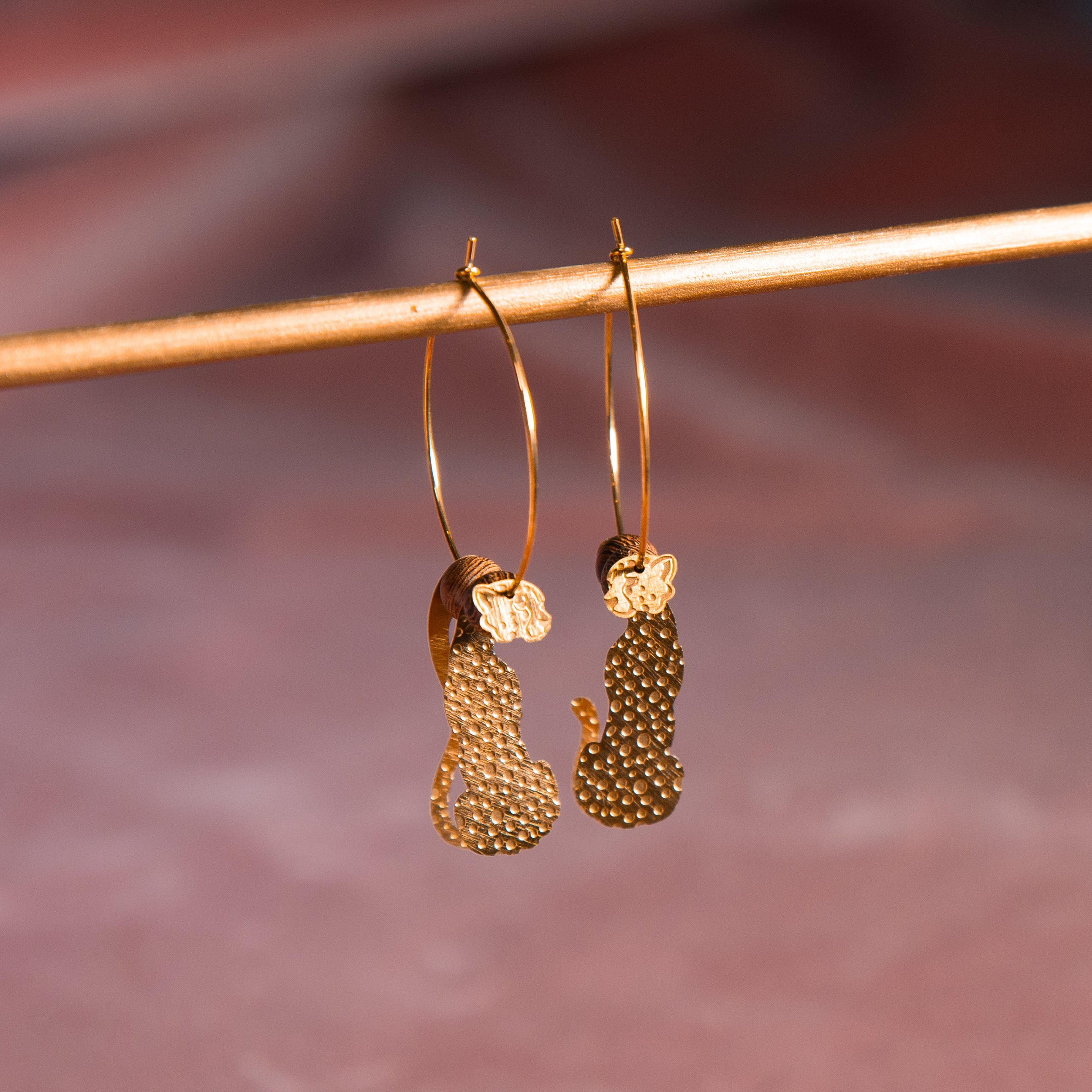 Embrace your wild side with our Savanna Cat Hoop Earrings where elegance meets playful charm. Featuring a striking 3D leopard silhouette with textured detailing, these earrings bring personality and sophistication to any look.