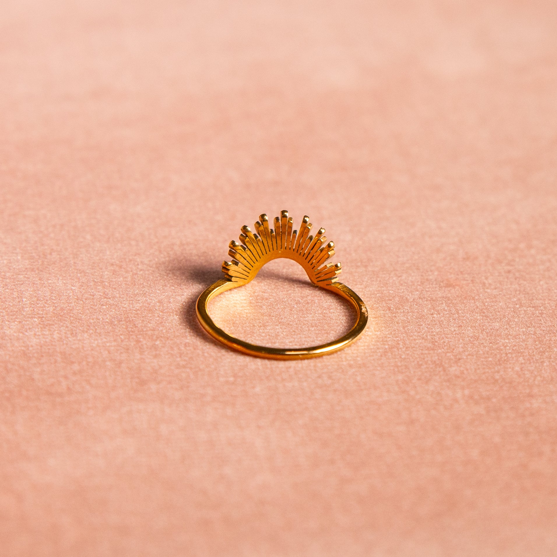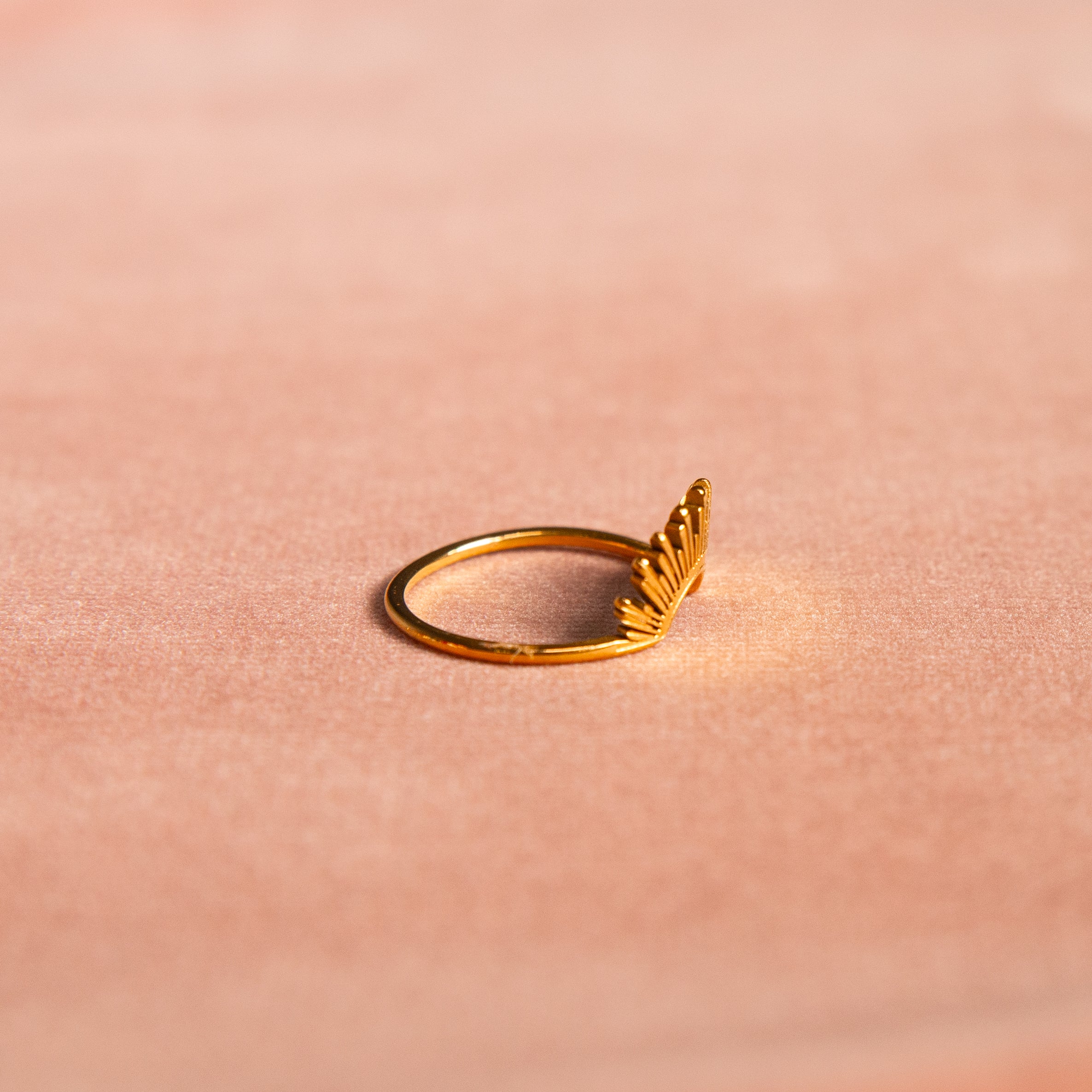 A refined, sculptural piece designed to add effortless elegance to any stack. The Maelis Ring features a unique curved design with delicate linear detailing, creating a look that is both bold and feminine. Whether worn solo or paired with your favorite rings, it brings a touch of sophistication to every outfit.