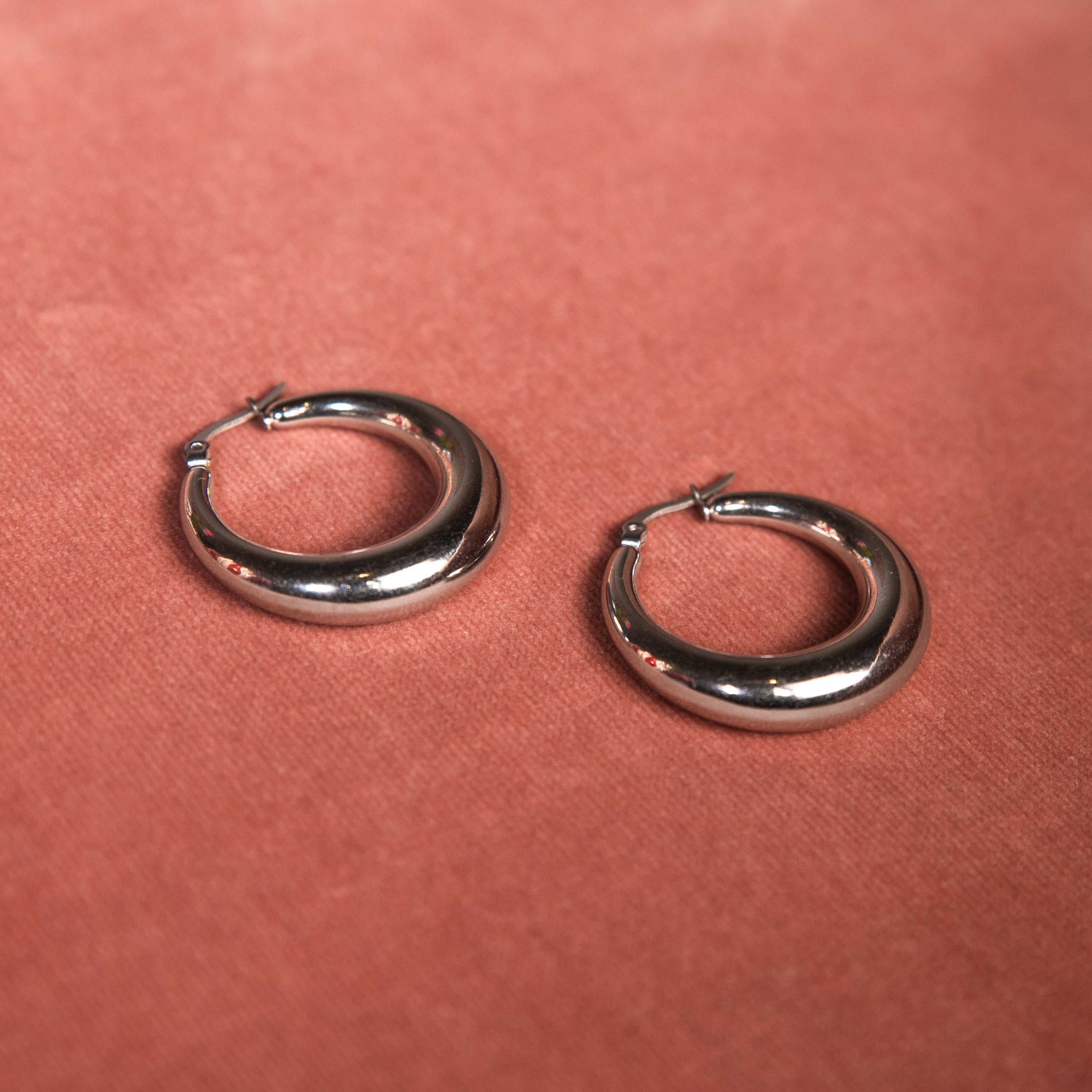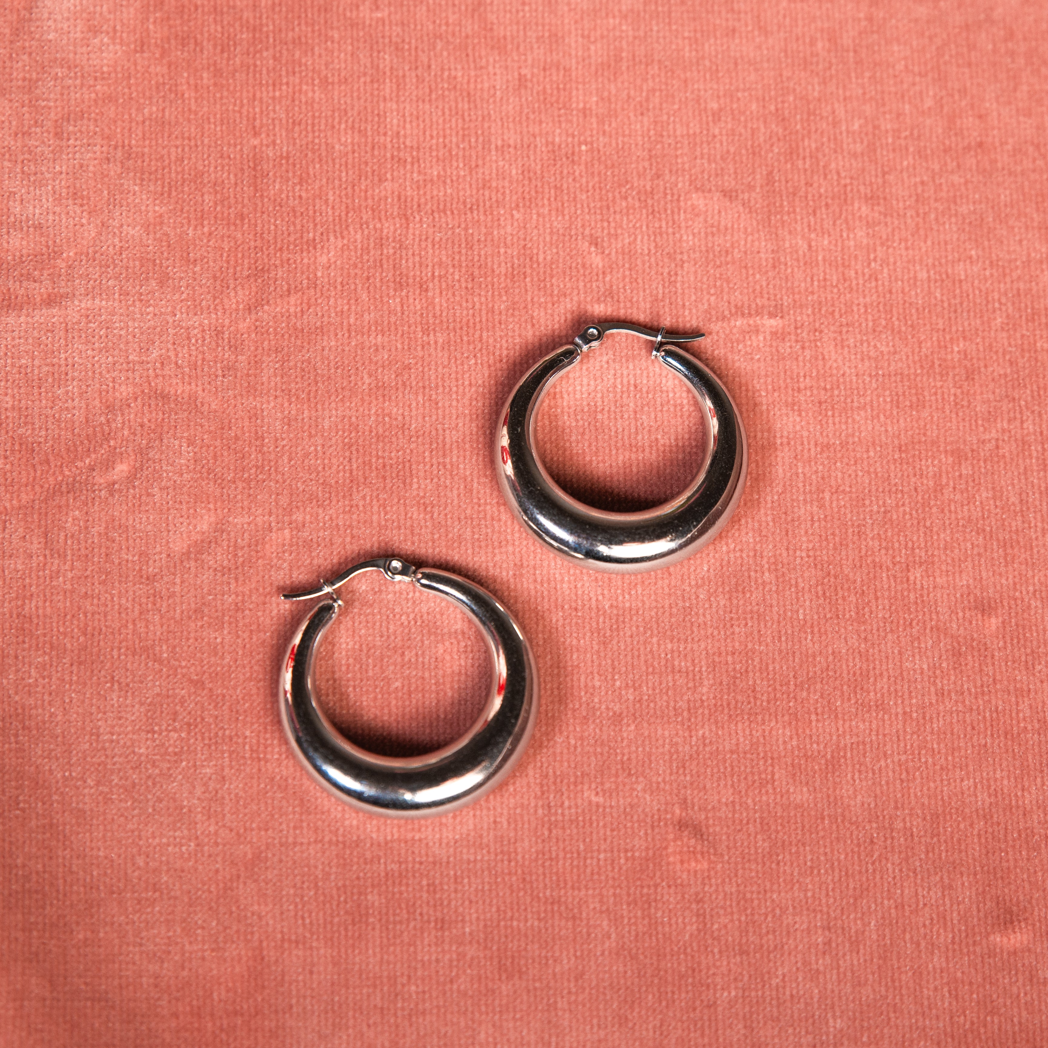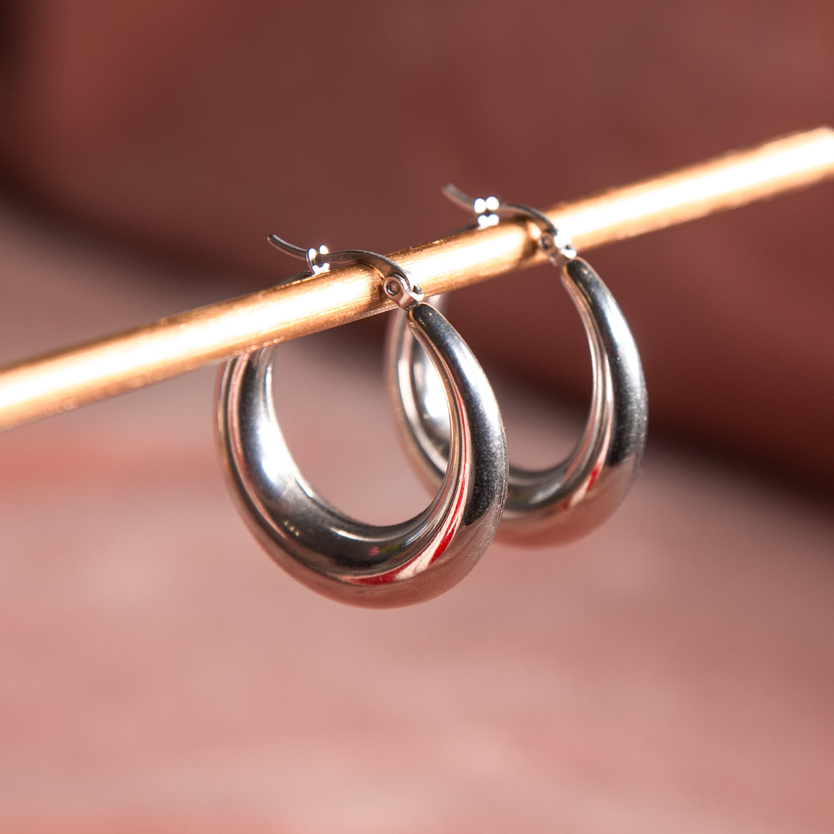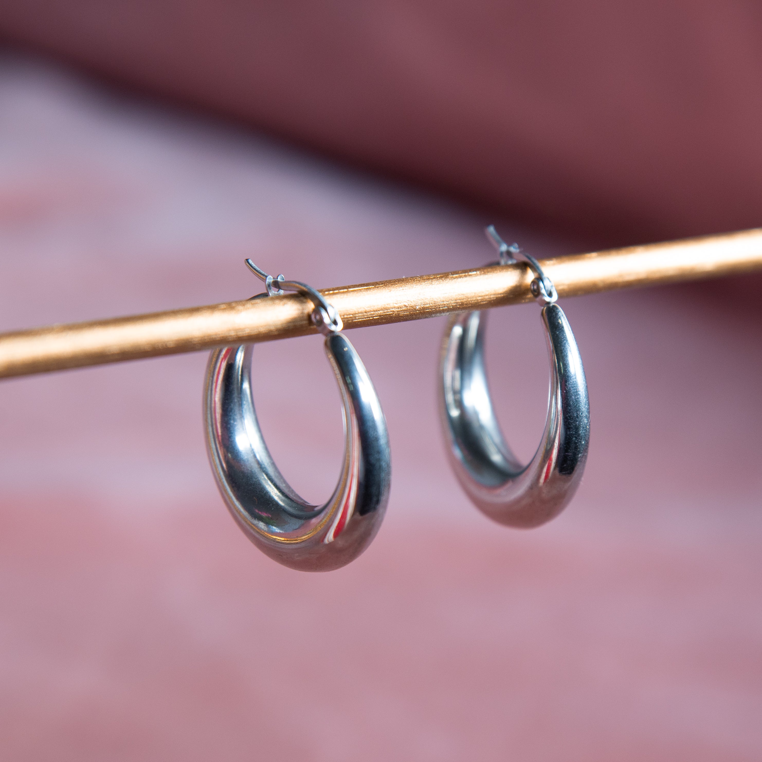 Durable, lightweight, and made to shine the Evelyn Hoops are the finishing touch to every outfit.