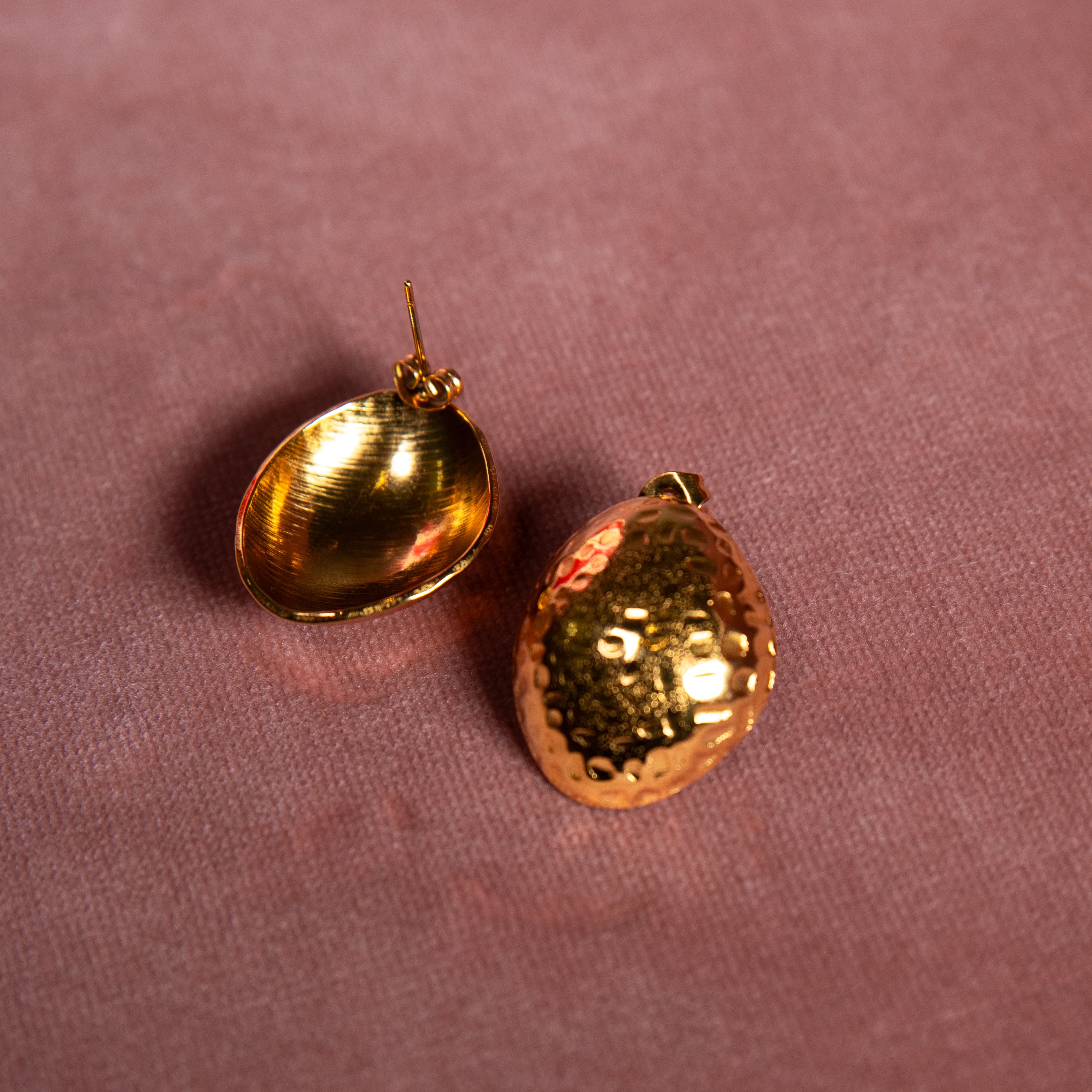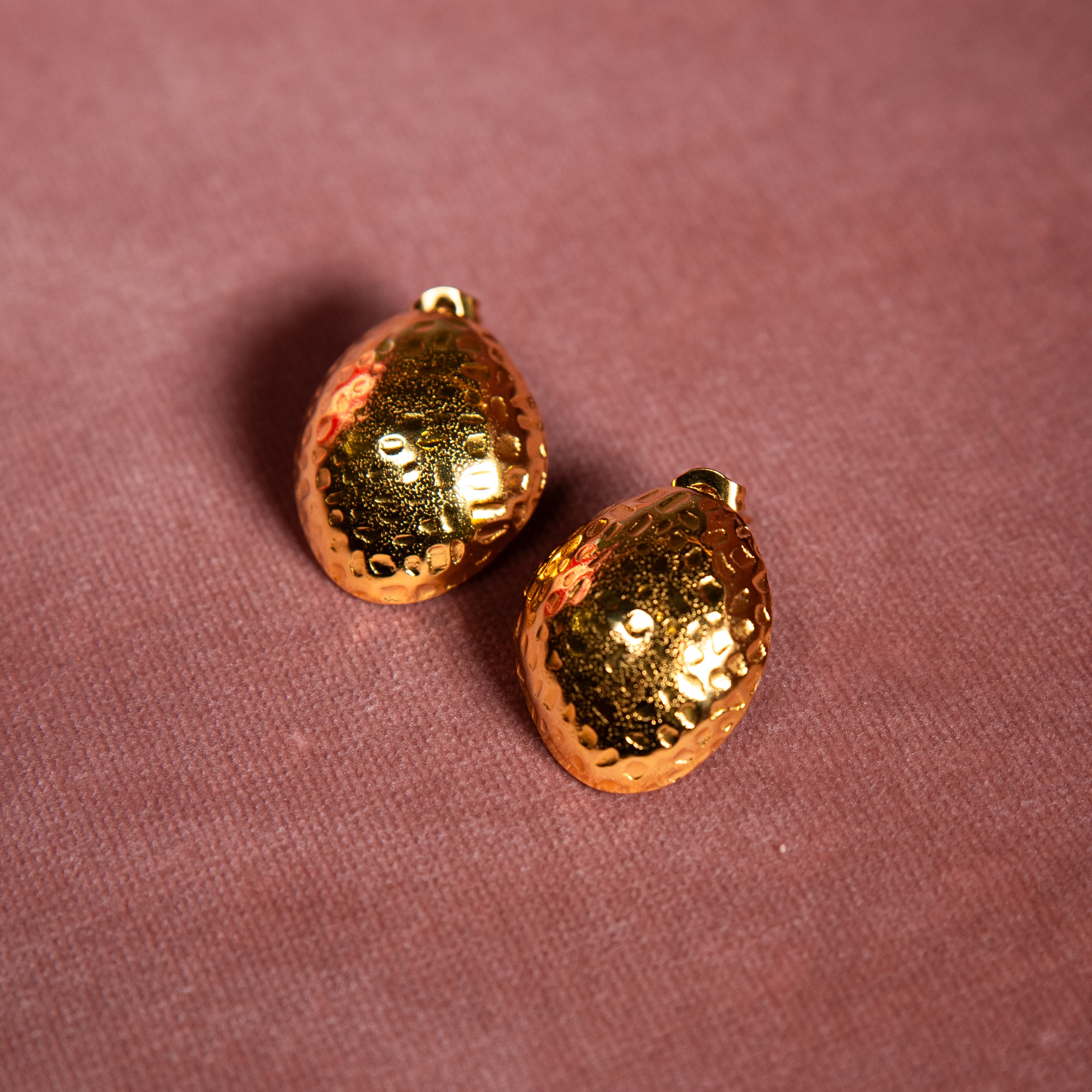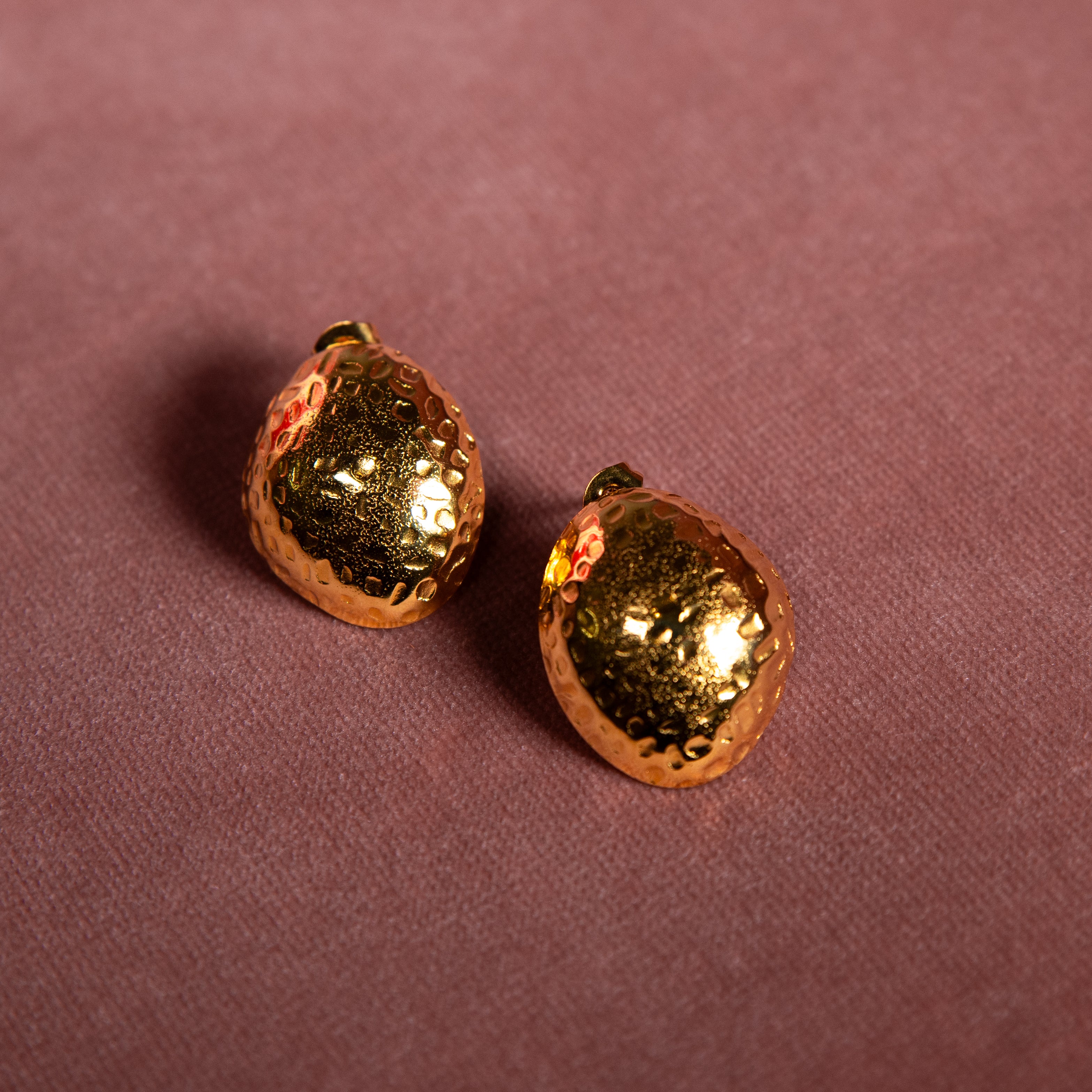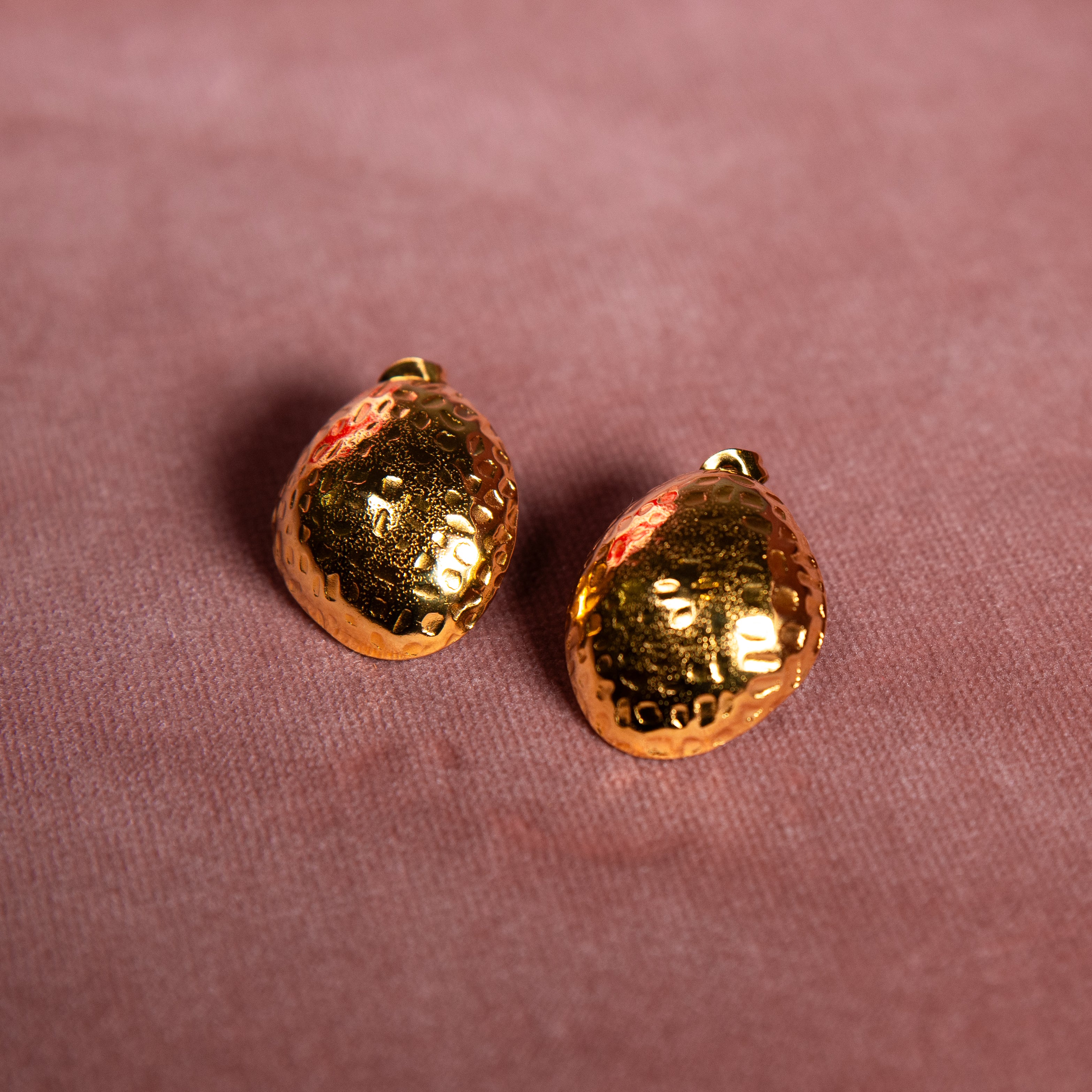 Their hammered texture reflects light beautifully, making them the perfect statement studs for both everyday wear and special occasions.