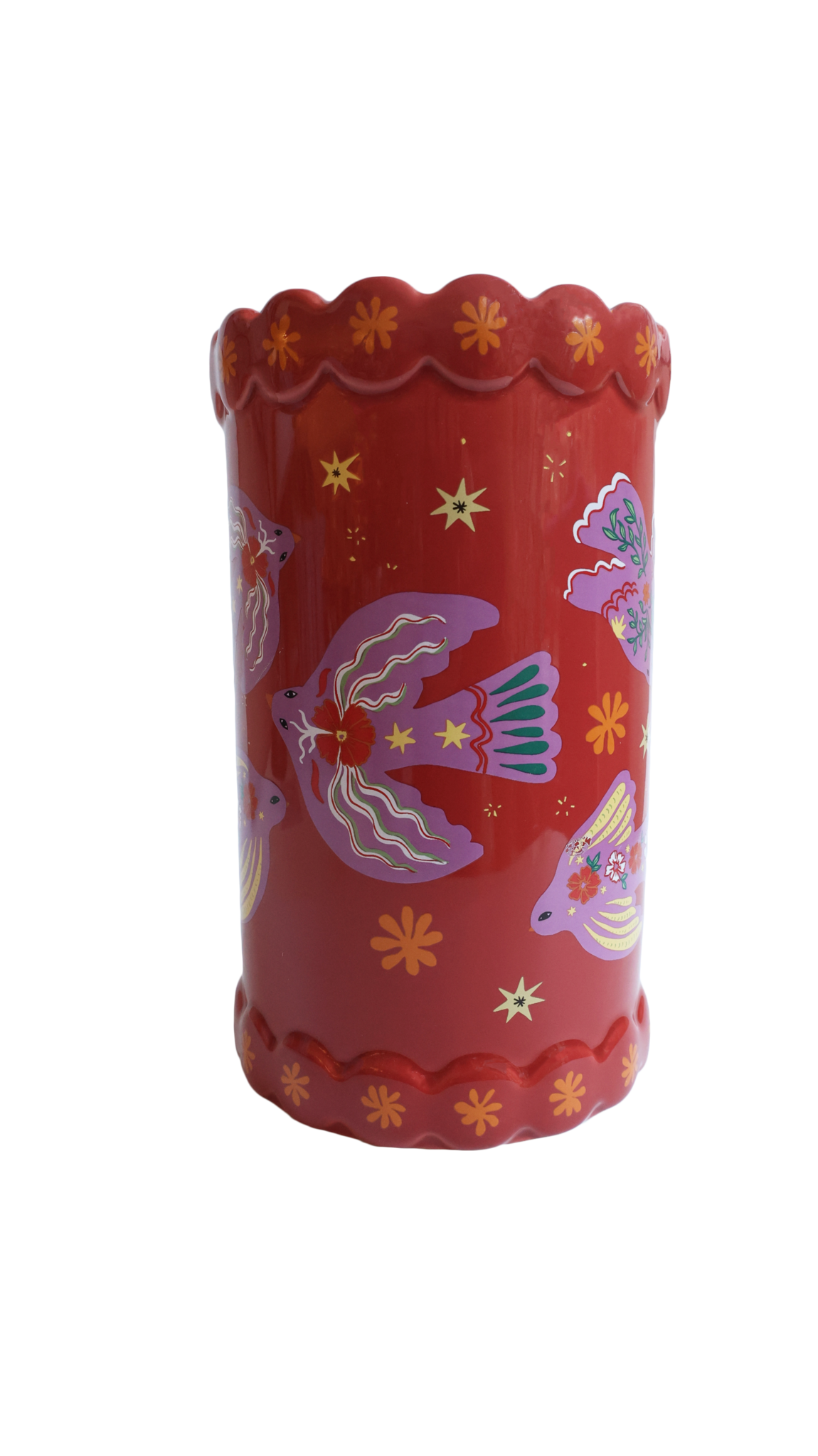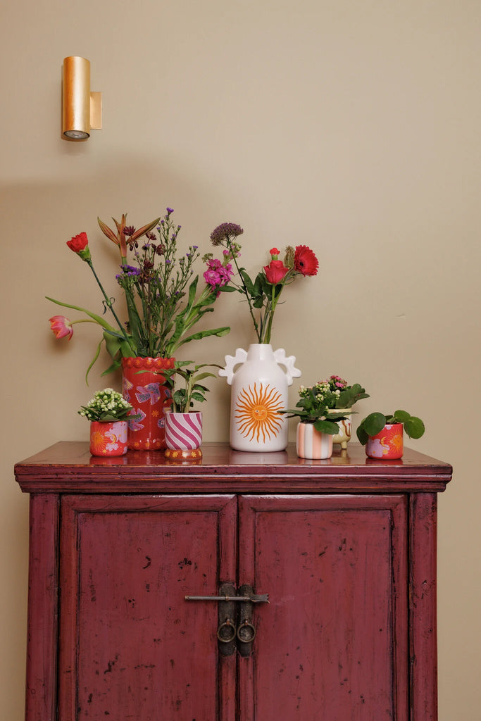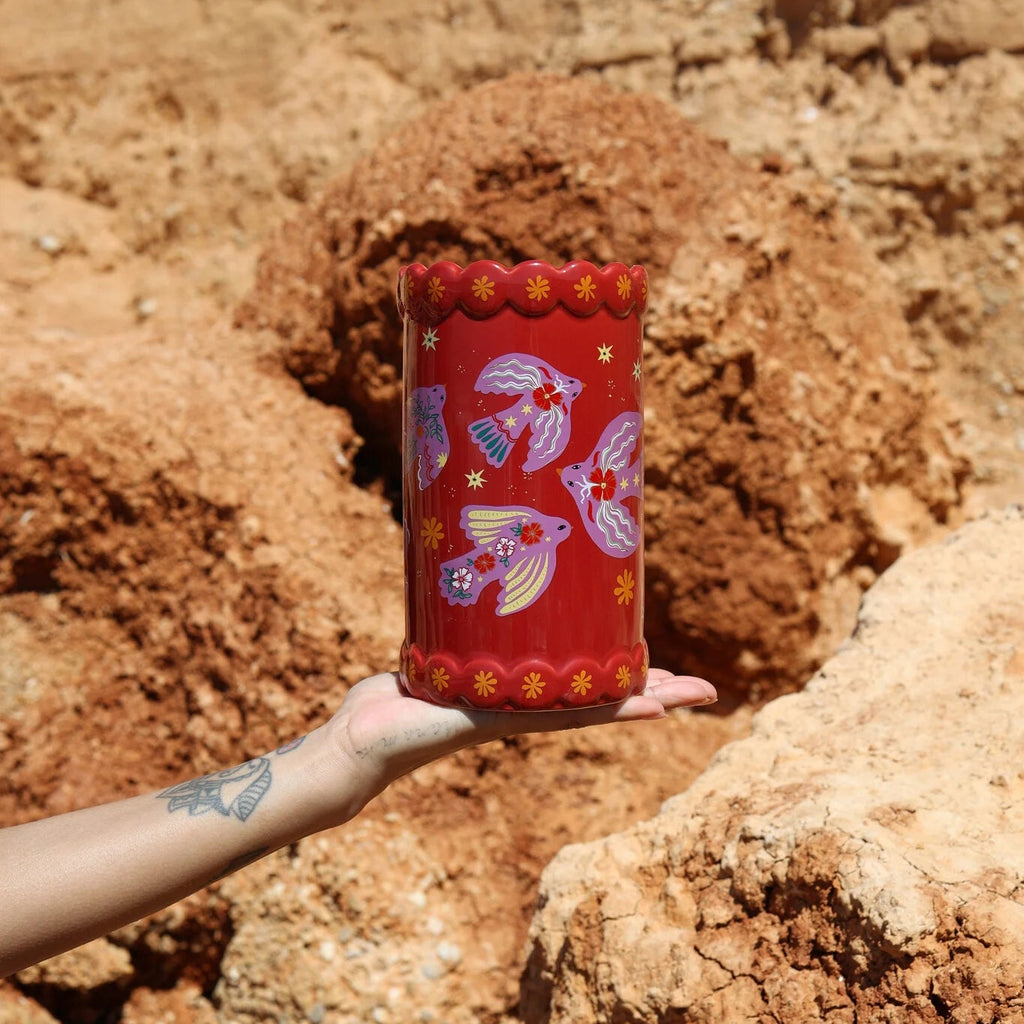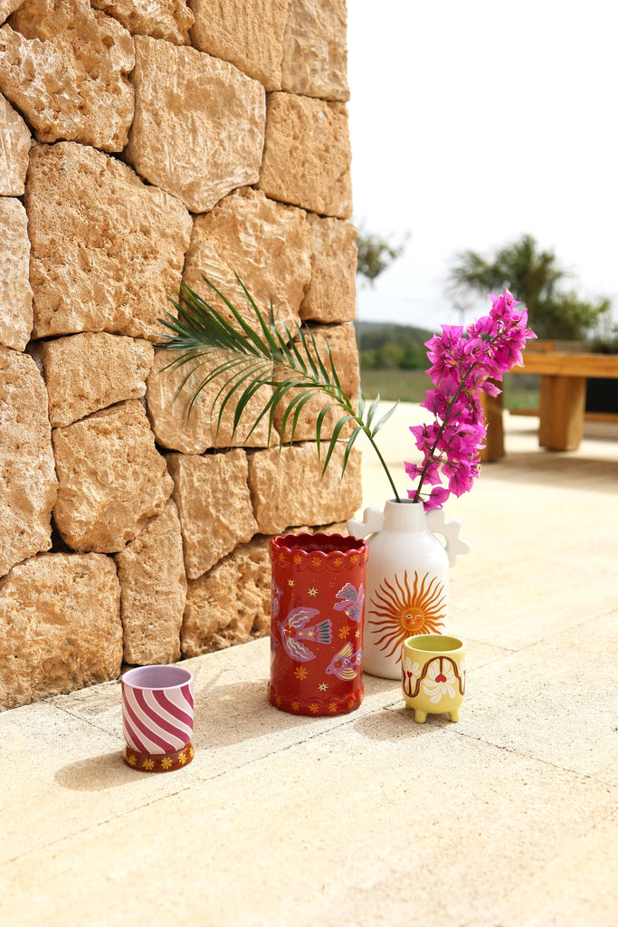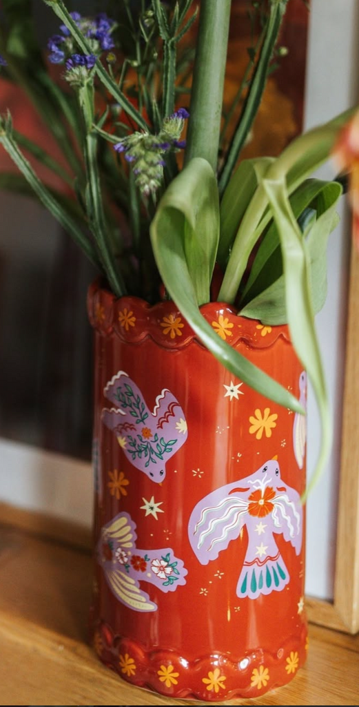 A cheerful ceramic vase with a playful little bird perched on top ready to bring a burst of happiness to your home! Whether it’s sitting on a windowsill, brightening a desk, or adding charm to your coffee table, this delightful vase is sure to make you smile every time you see it.