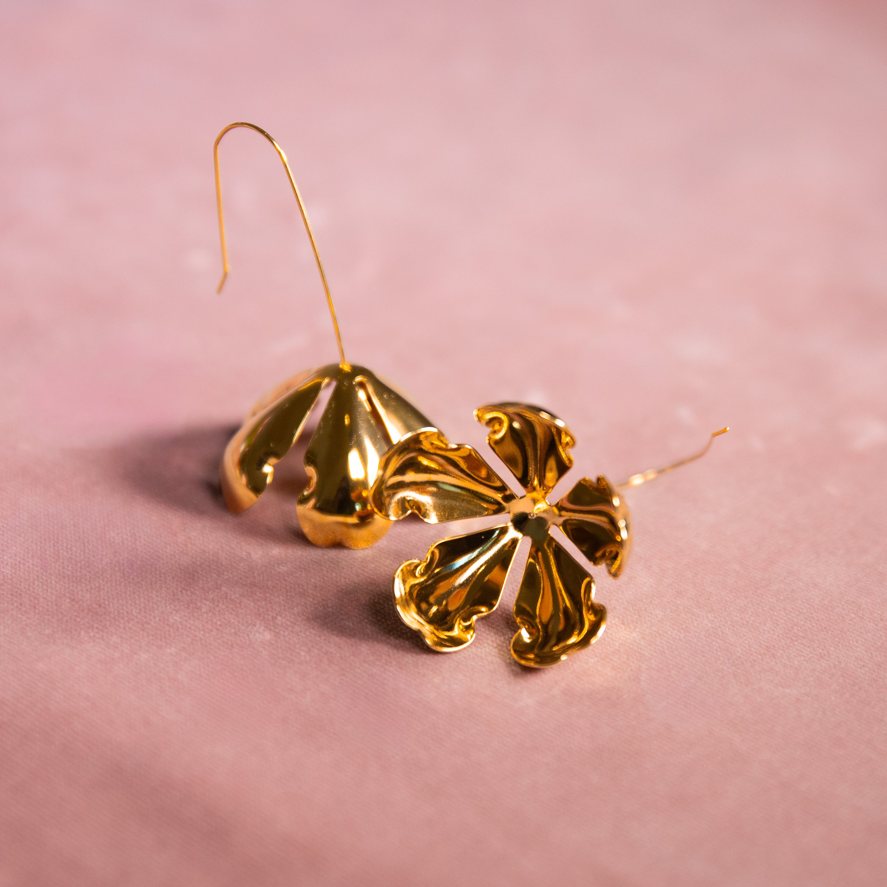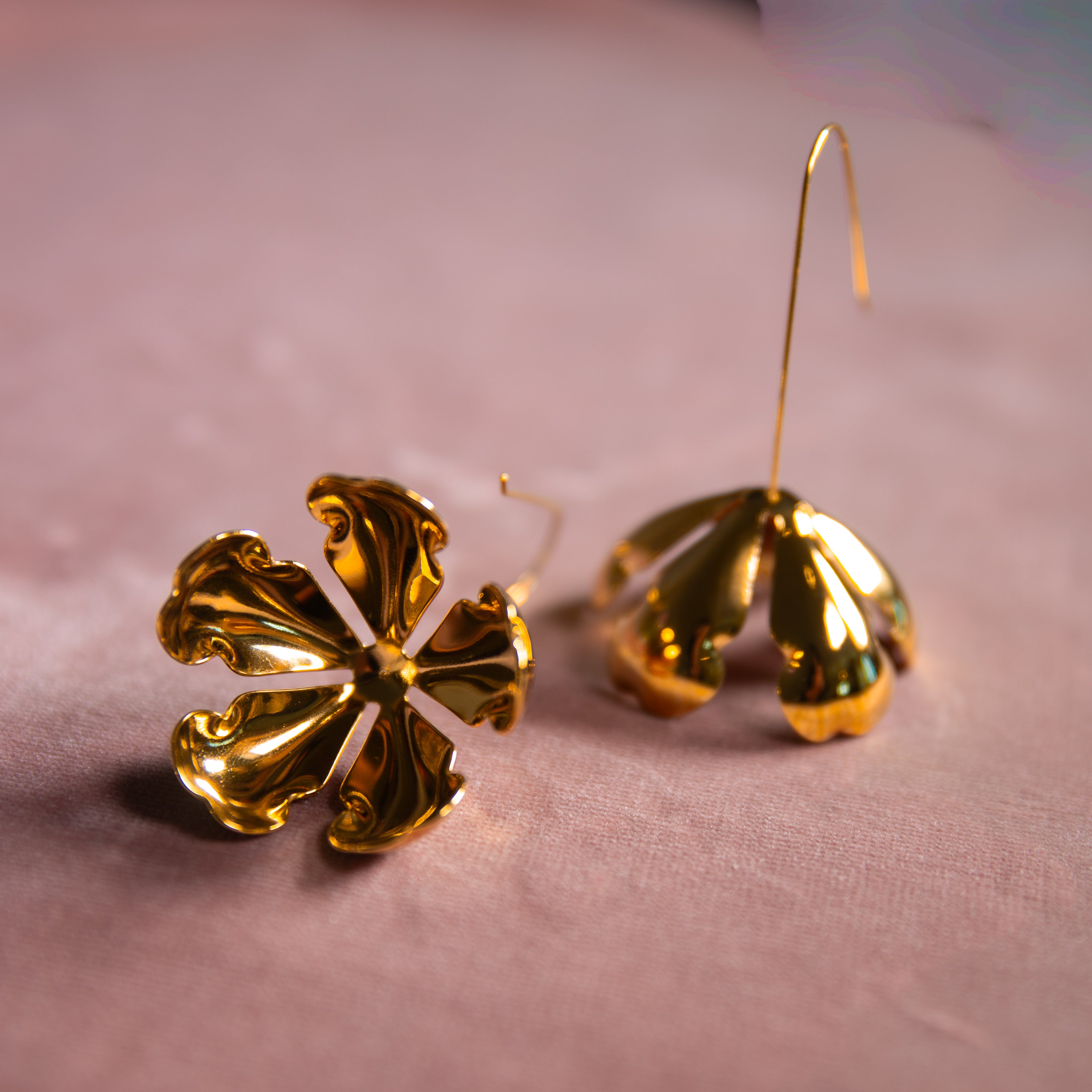 Elegant and sculptural, the Tulipina Earrings bloom with a fluid floral silhouette designed to make a statement. Their artistic shape captures the movement of a flower in full bloom, creating a look that is both feminine and bold. Lightweight and waterproof, they are perfect for elevating everyday outfits or adding refinement to evening wear.