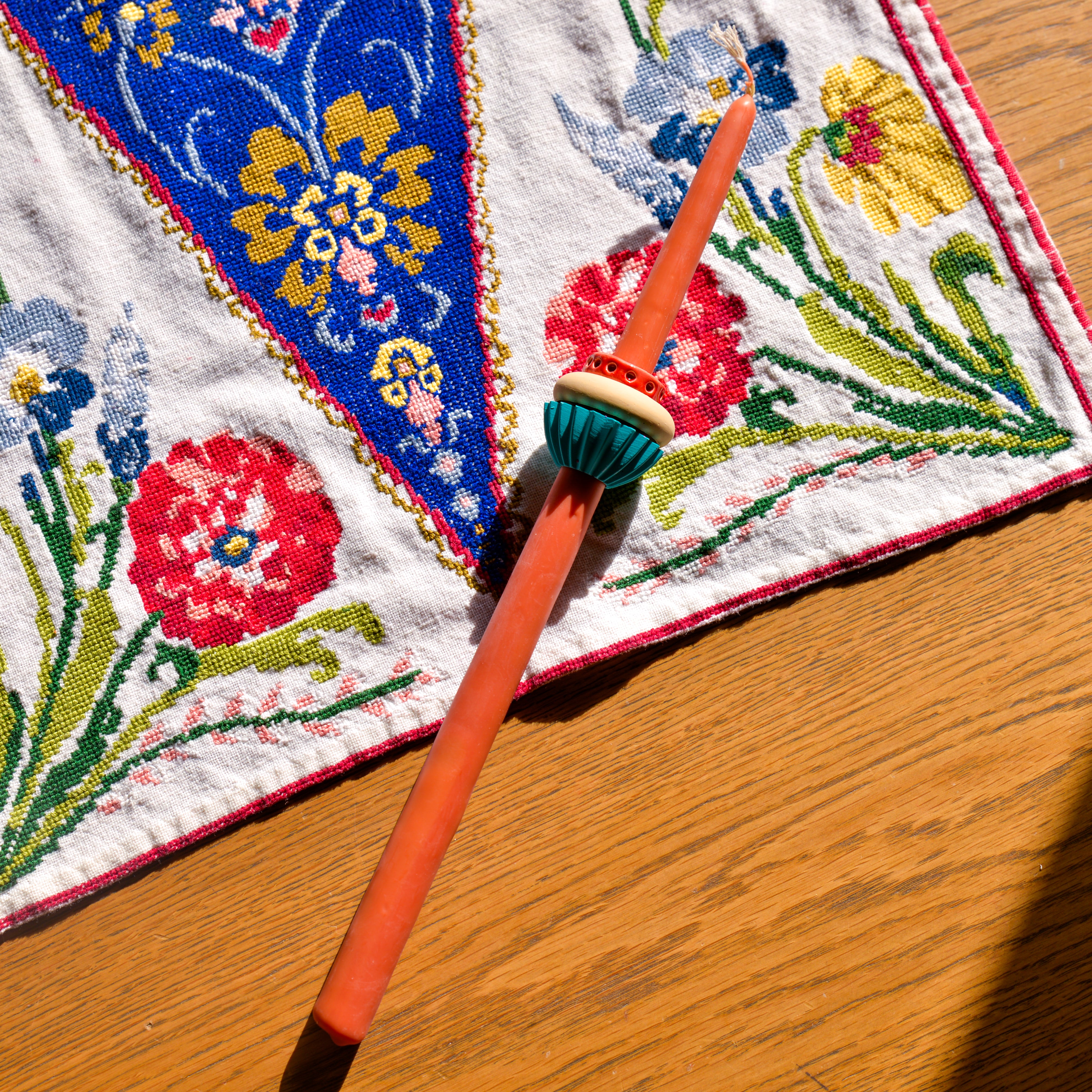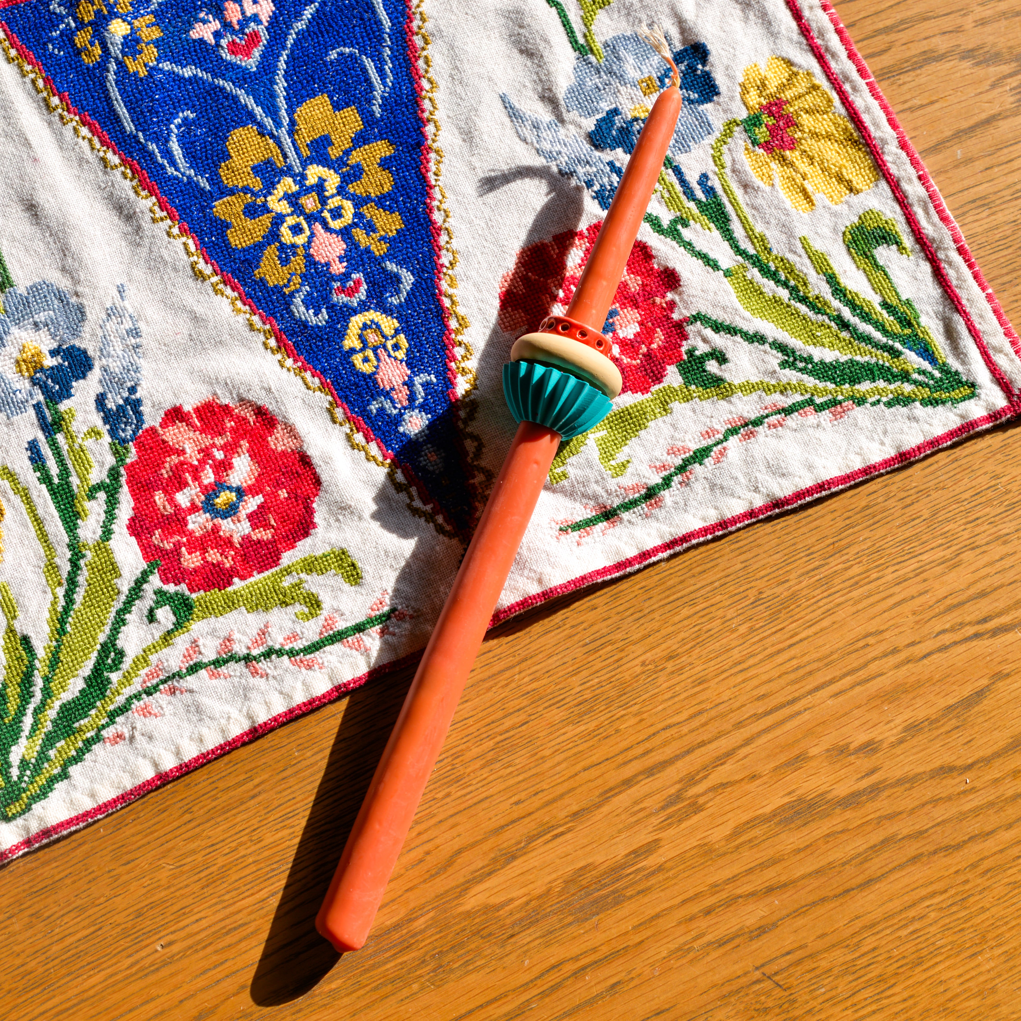Συνοδεύεται από τρία χειροποίητα "δαχτυλίδια'' ρητίνης και κεραμικά για να ''παίξετε'' μαζί τους σε συνδυασμούς γαλάζιων και κόκκινων αποχρώσεων. Μετά την καύση της λαμπάδας, μπορείτε να τα χρησιμοποίησετε μικρά μενταγιόν περασμένα σε αλυσίδα ή ως αξεσουάρ σε key chain ή ως κρίκους πετσέτας φαγητού.