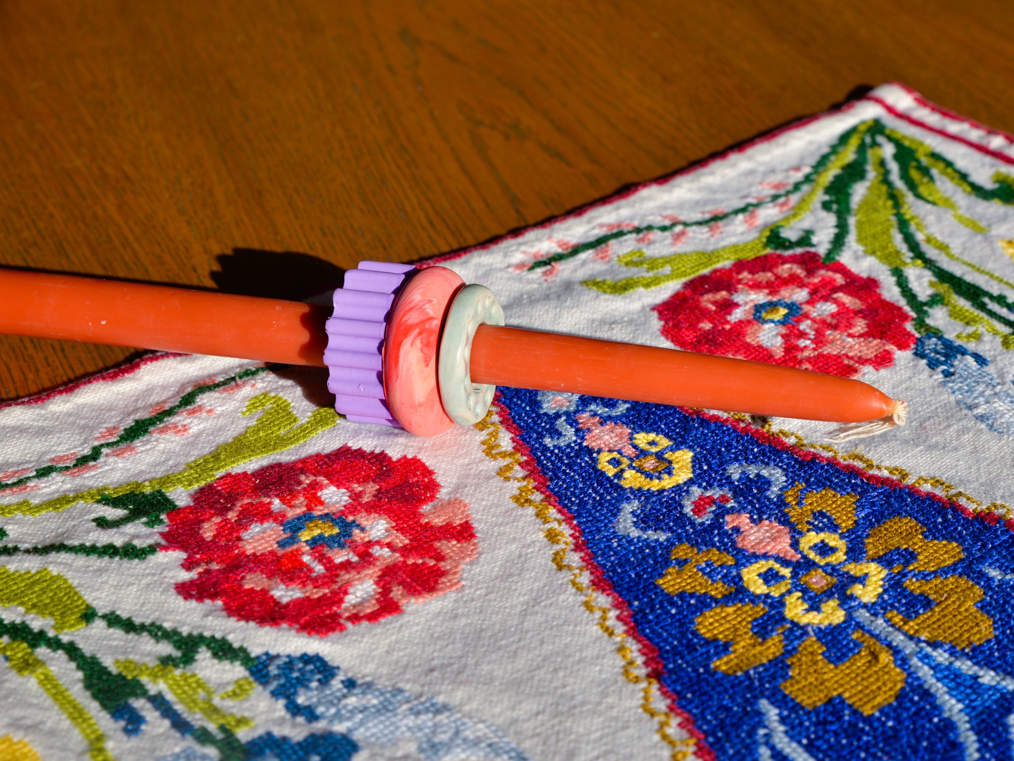 Συνοδεύεται από τρία χειροποίητα "δαχτυλίδια'' ρητίνης και κεραμικά για να ''παίξετε'' μαζί τους σε συνδυασμούς μπλε αποχρώσεων. Μετά την καύση της λαμπάδας, μπορείτε να τα χρησιμοποίησετε μικρά μενταγιόν περασμένα σε αλυσίδα ή ως αξεσουάρ σε key chain ή ως κρίκους πετσέτας φαγητού.