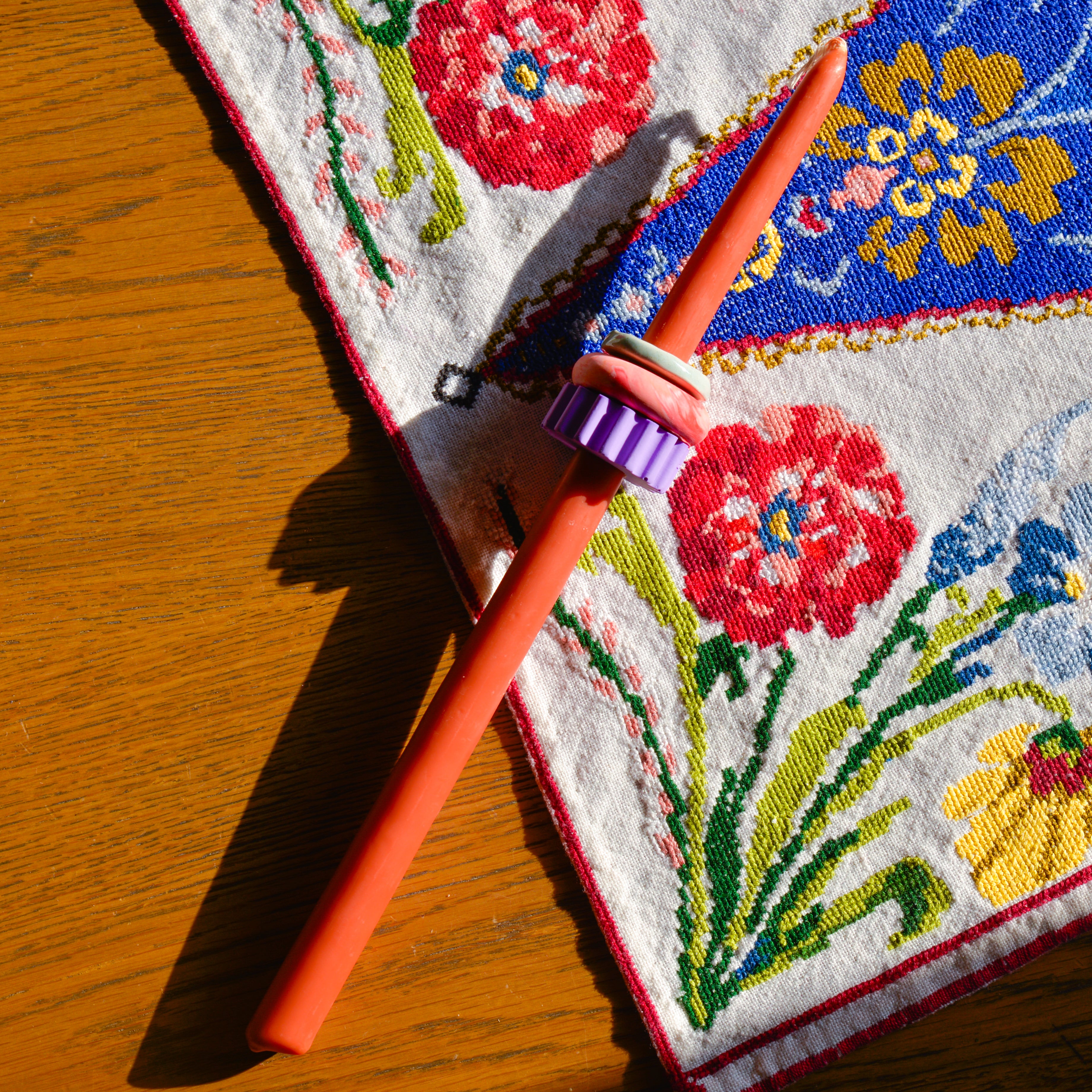 Συνοδεύεται από τρία χειροποίητα "δαχτυλίδια'' ρητίνης και κεραμικά για να ''παίξετε'' μαζί τους σε συνδυασμούς γαλάζιων και μωβ αποχρώσεων. Μετά την καύση της λαμπάδας, μπορείτε να τα χρησιμοποίησετε μικρά μενταγιόν περασμένα σε αλυσίδα ή ως αξεσουάρ σε key chain ή ως κρίκους πετσέτας φαγητού.