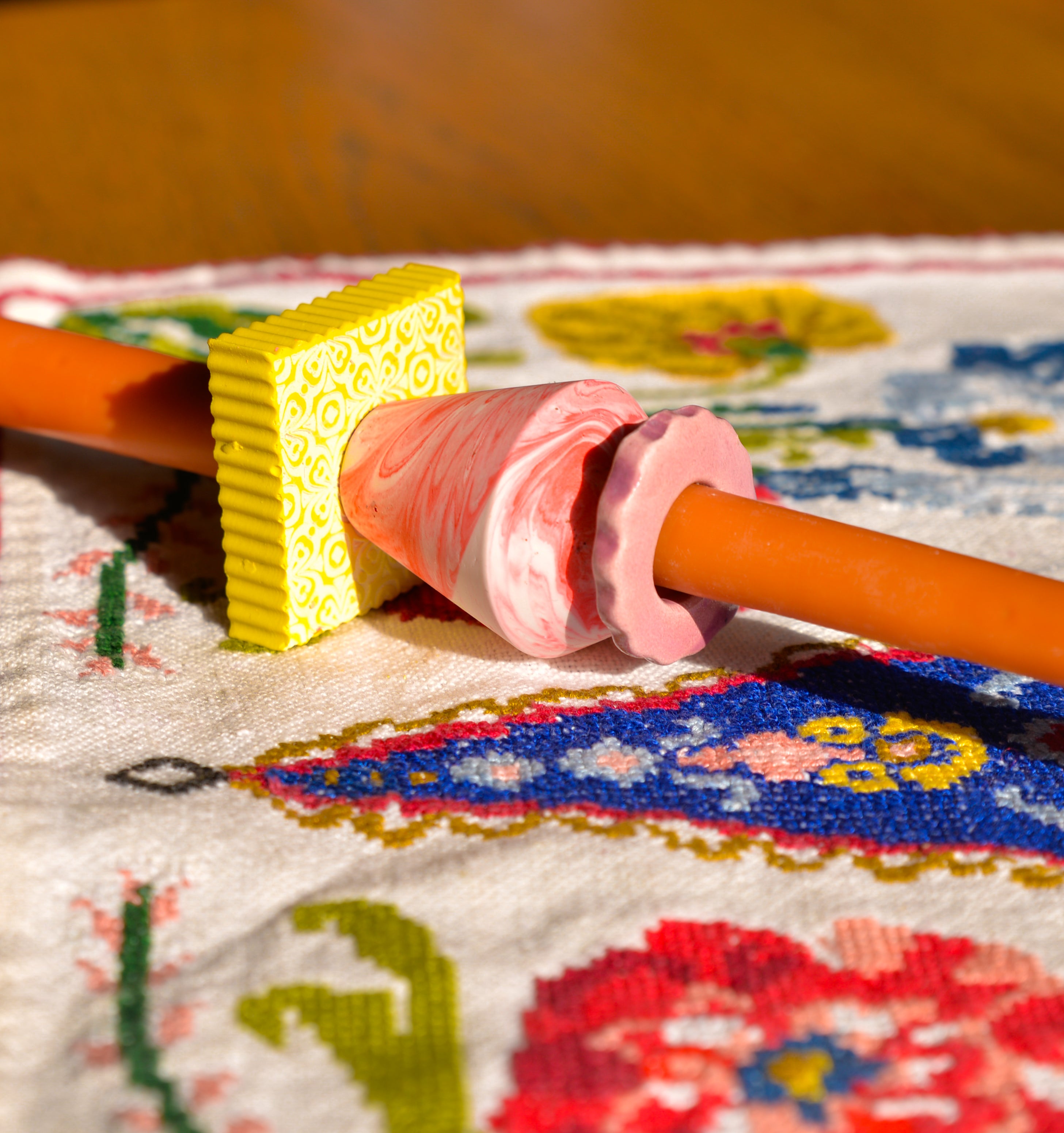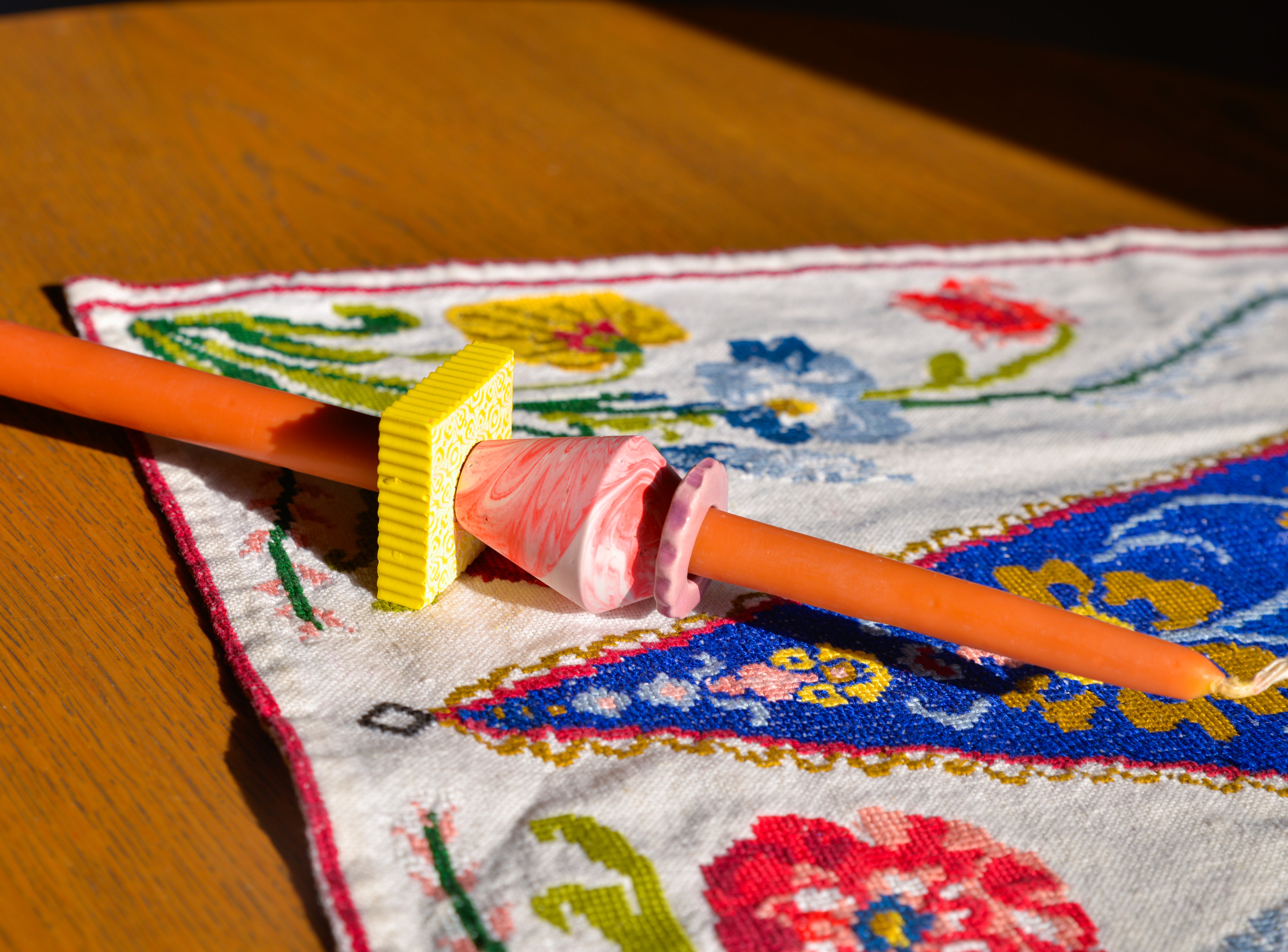 Συνοδεύεται από τρία χειροποίητα "δαχτυλίδια'' ρητίνης και κεραμικά για να ''παίξετε'' μαζί τους σε συνδυασμούς κόκκινων και κίτρινων αποχρώσεων. Μετά την καύση της λαμπάδας, μπορείτε να τα χρησιμοποίησετε μικρά μενταγιόν περασμένα σε αλυσίδα ή ως αξεσουάρ σε key chain ή ως κρίκους πετσέτας φαγητού.