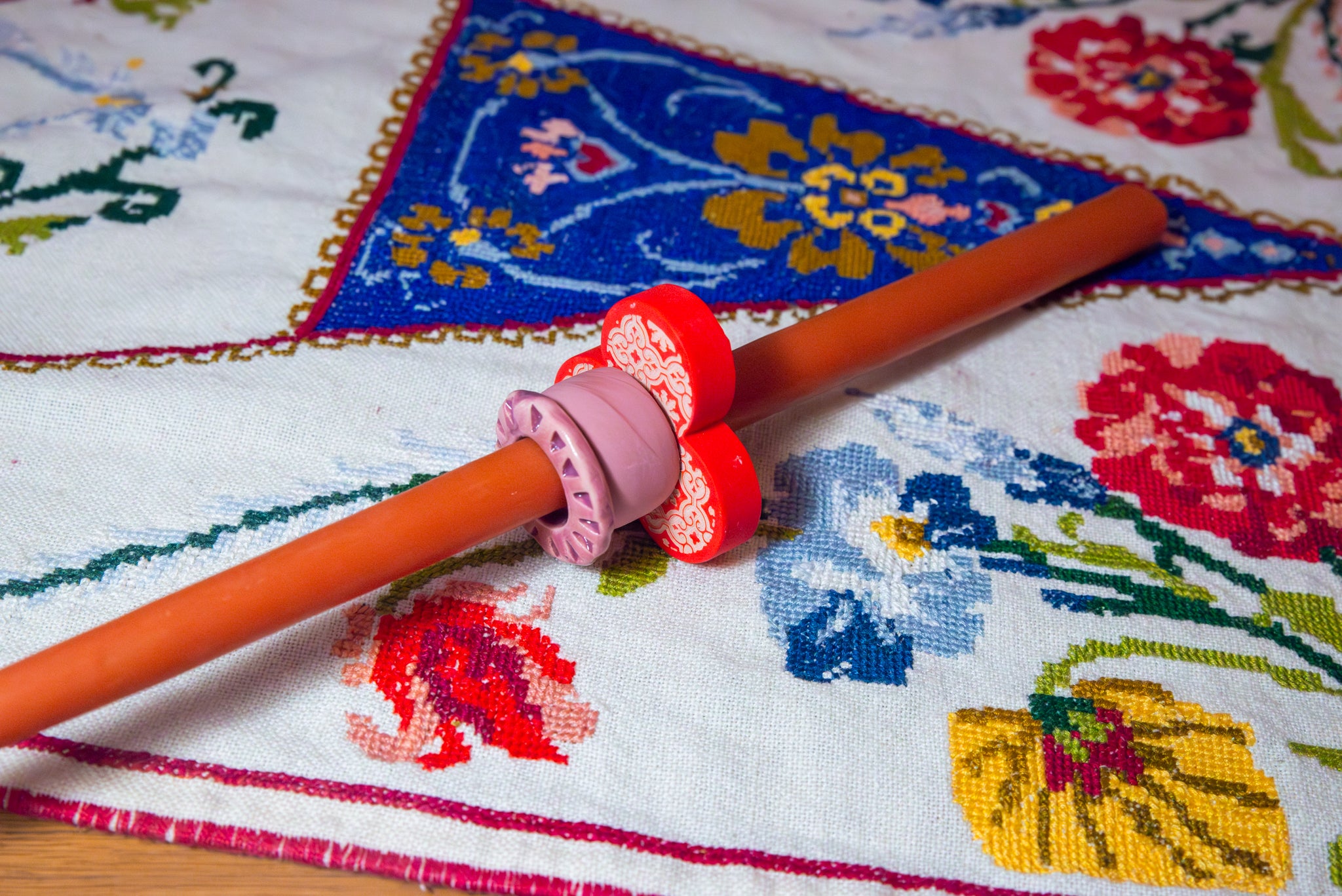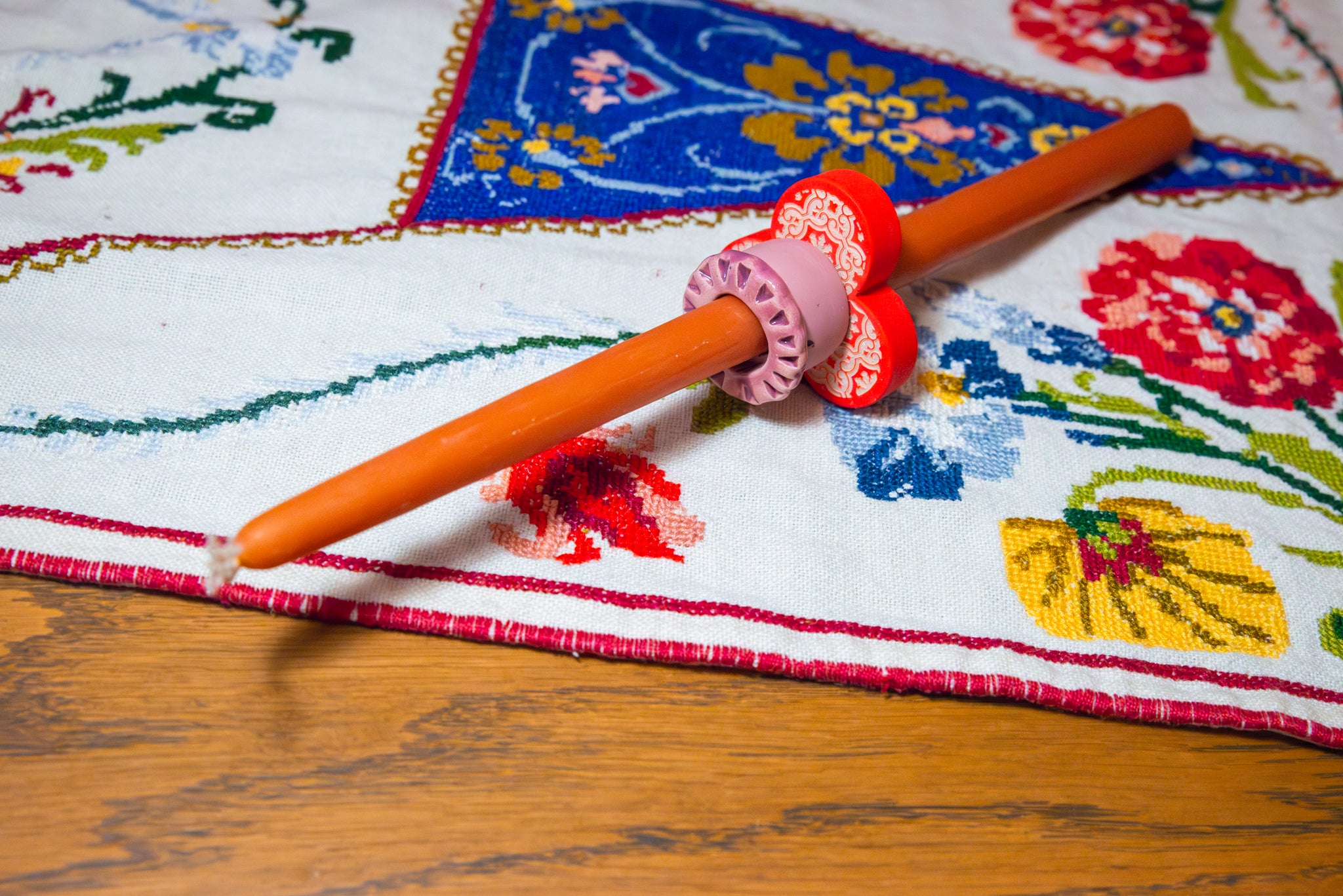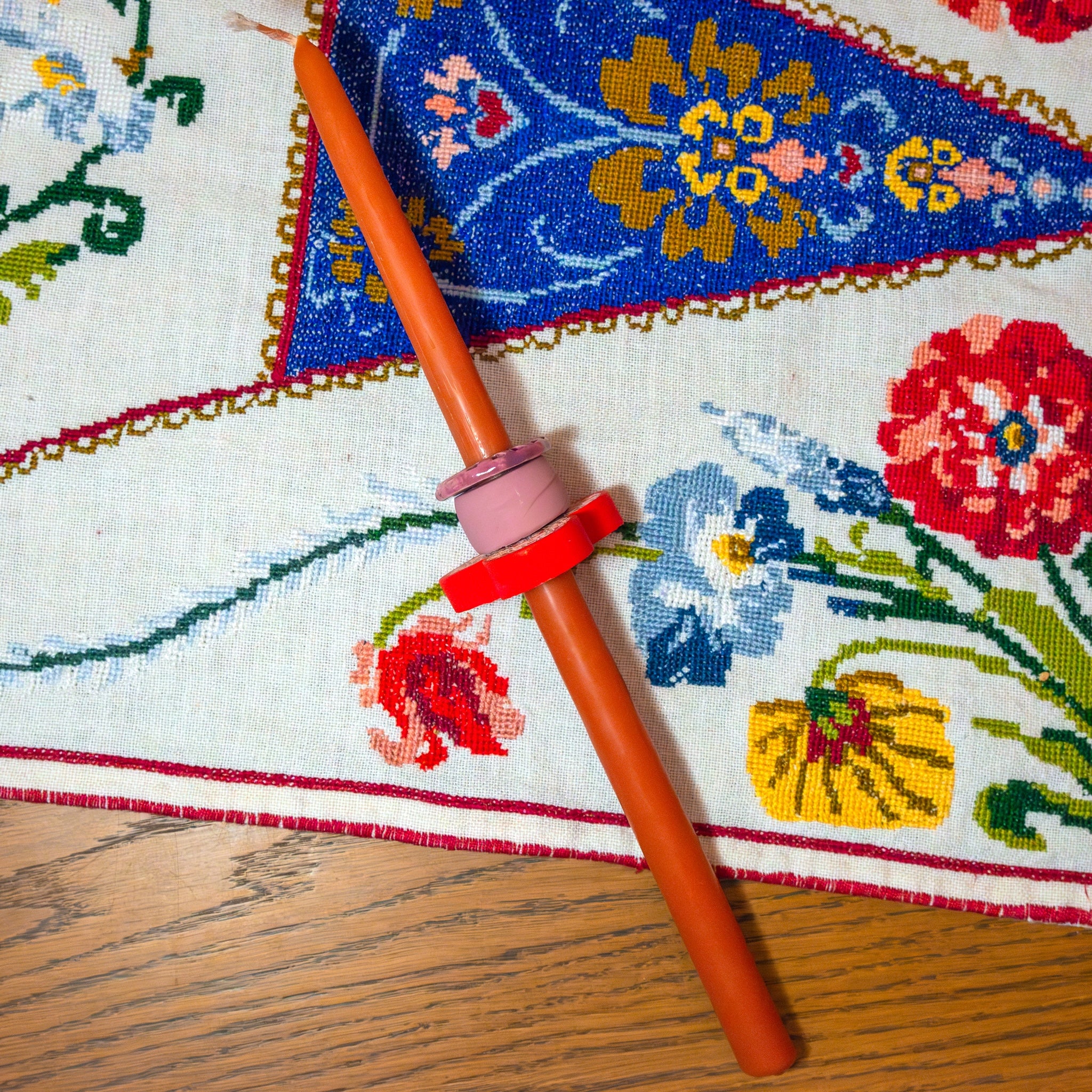 Συνοδεύεται από τρία χειροποίητα "δαχτυλίδια'' ρητίνης και κεραμικά για να ''παίξετε'' μαζί τους σε συνδυασμούς μωβ και κόκκινων αποχρώσεων. Μετά την καύση της λαμπάδας, μπορείτε να τα χρησιμοποίησετε μικρά μενταγιόν περασμένα σε αλυσίδα ή ως αξεσουάρ σε key chain ή ως κρίκους πετσέτας φαγητού.
