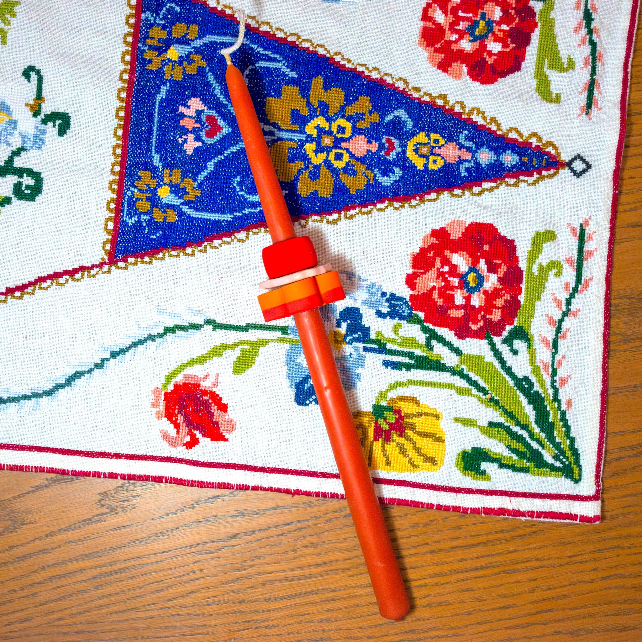 Συνοδεύεται από τρία χειροποίητα "δαχτυλίδια'' ρητίνης και κεραμικά για να ''παίξετε'' μαζί τους σε συνδυασμούς κόκινου, ροζ και πορτοκαλί αποχρώσεων. Μετά την καύση της λαμπάδας, μπορείτε να τα χρησιμοποίησετε μικρά μενταγιόν περασμένα σε αλυσίδα ή ως αξεσουάρ σε key chain ή ως κρίκους πετσέτας φαγητού.