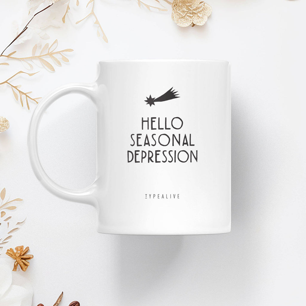 This mug says what we’re all thinking when the days get shorter and the to-do lists get longer Hello Seasonal Depression. The perfect dose of dark humor for cozy winter days, holiday burnout, or your next office coffee break.