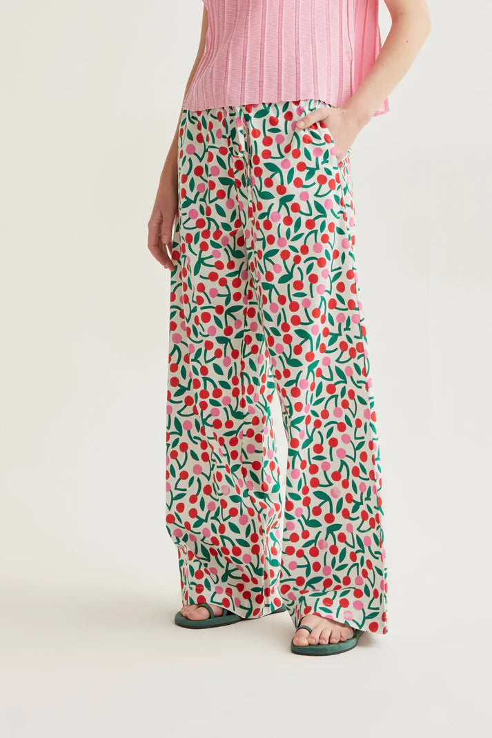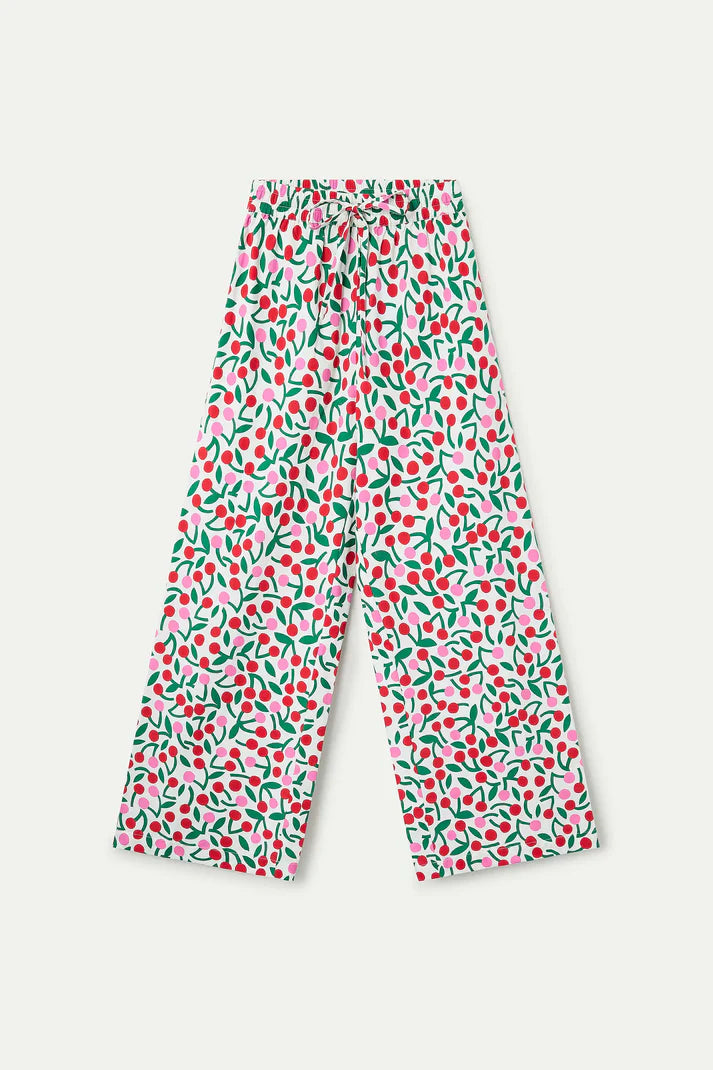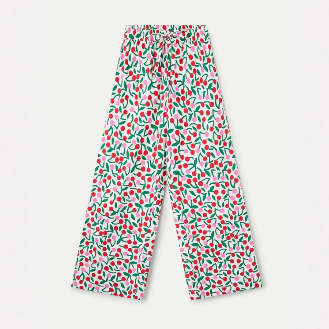 Designed with a relaxed wide-leg fit, they’re the perfect balance between effortless comfort and standout style. Pair them with a crisp white shirt for a chic daytime look or style them with the matching cherry pieces for a coordinated fashion moment.