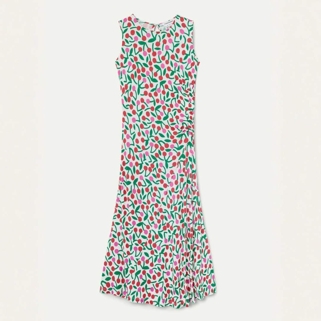 Effortless elegance with a playful edge. This cherry print maxi dress is designed to move beautifully while making a confident style statement. The flowing silhouette creates a flattering shape that feels both relaxed and refined.