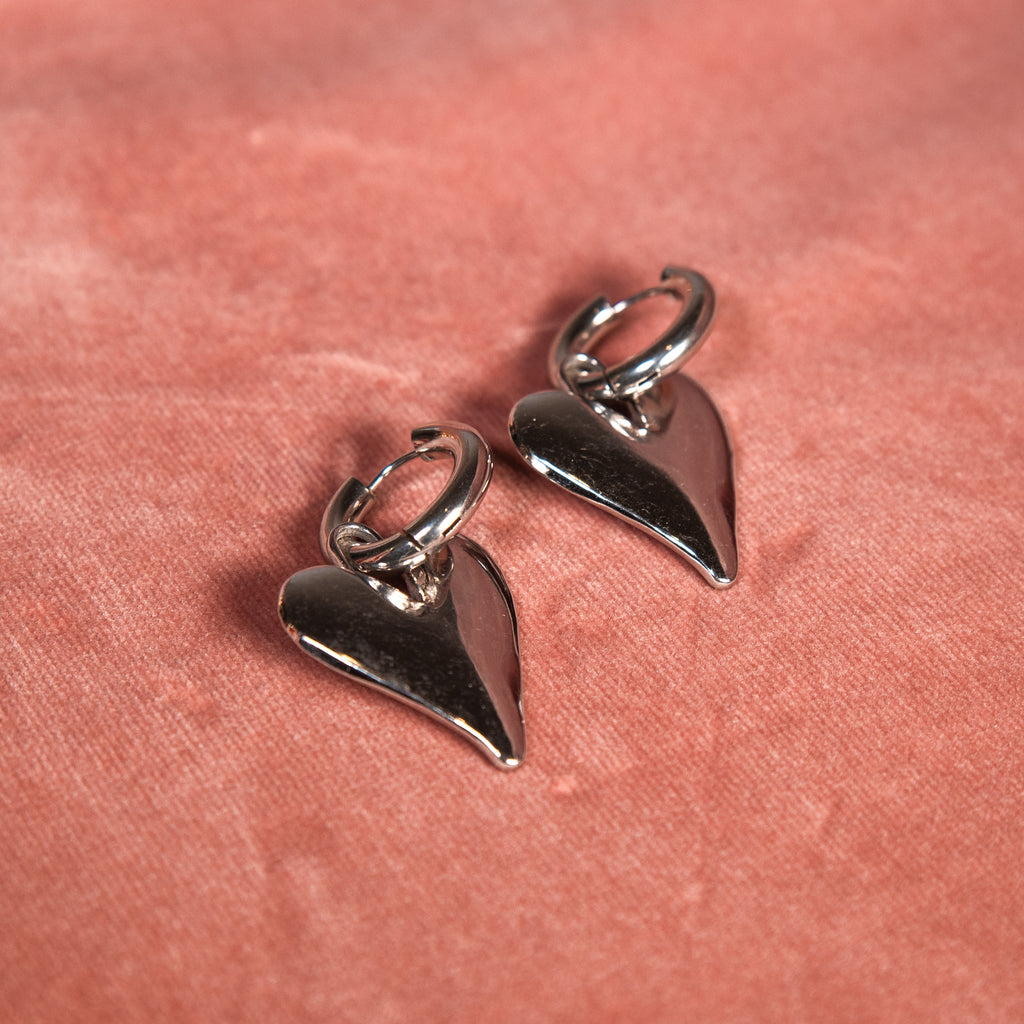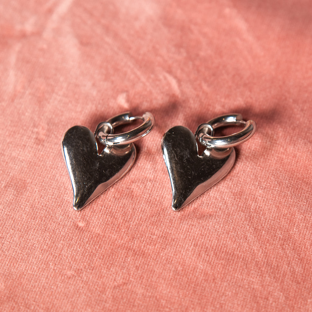 These dreamy earrings feature a bold heart charm that catches the light from every angle, adding instant attitude to any outfit.