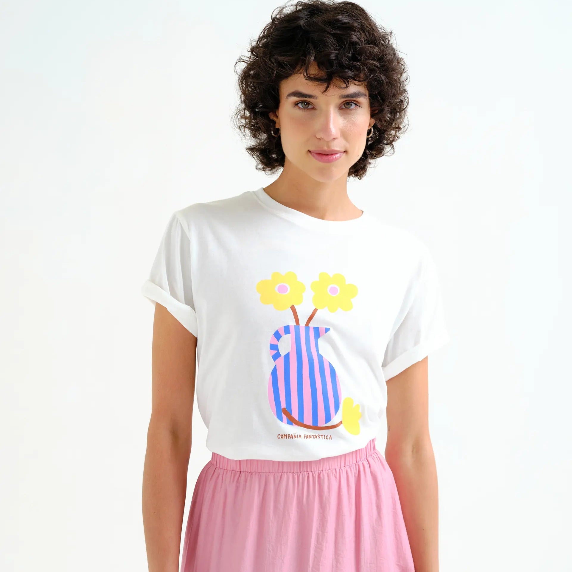 Featuring a delicate vase illustration paired with the “Compañía Fantástica” logo, this piece adds a subtle statement to casual looks while remaining easy to style.