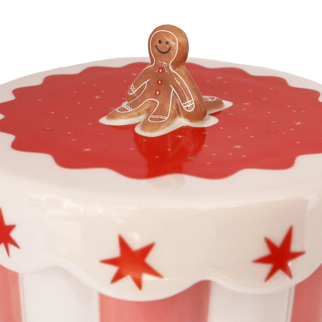 Bring warmth and whimsy into your space with the Gingerbread Man Jar — a glazed ceramic storage jar adorned with a festive gingerbread motif, blending charm with function.