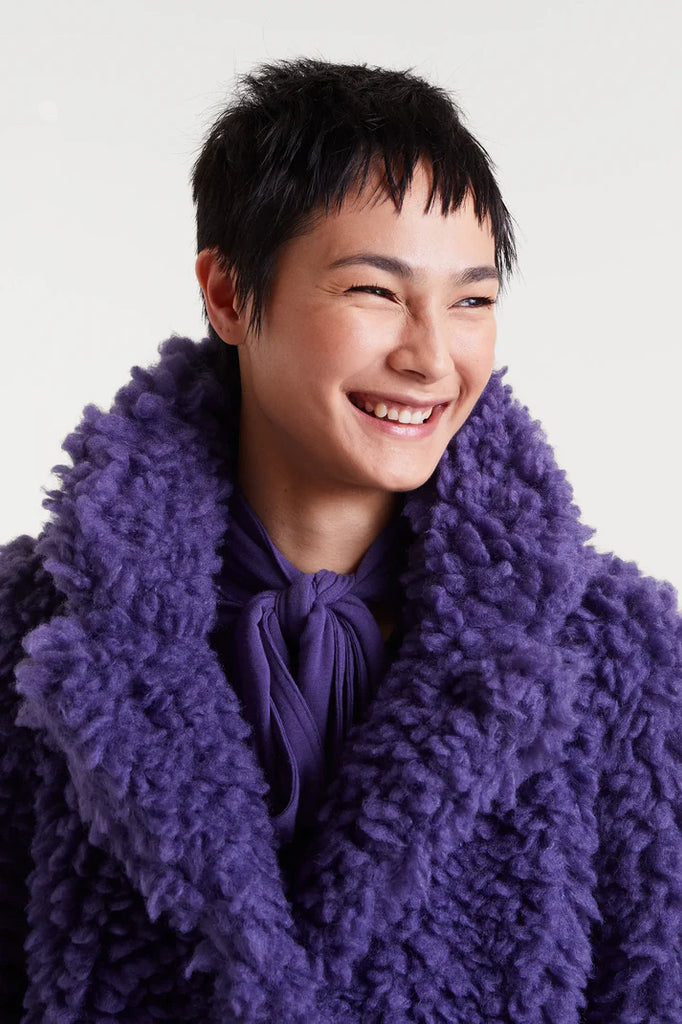 The Lilac Teddy Coat is where comfort meets sophistication. Its irresistibly soft feel, flattering cut, and bold color make it a must-have outerwear piece — the kind you’ll reach for all winter long.